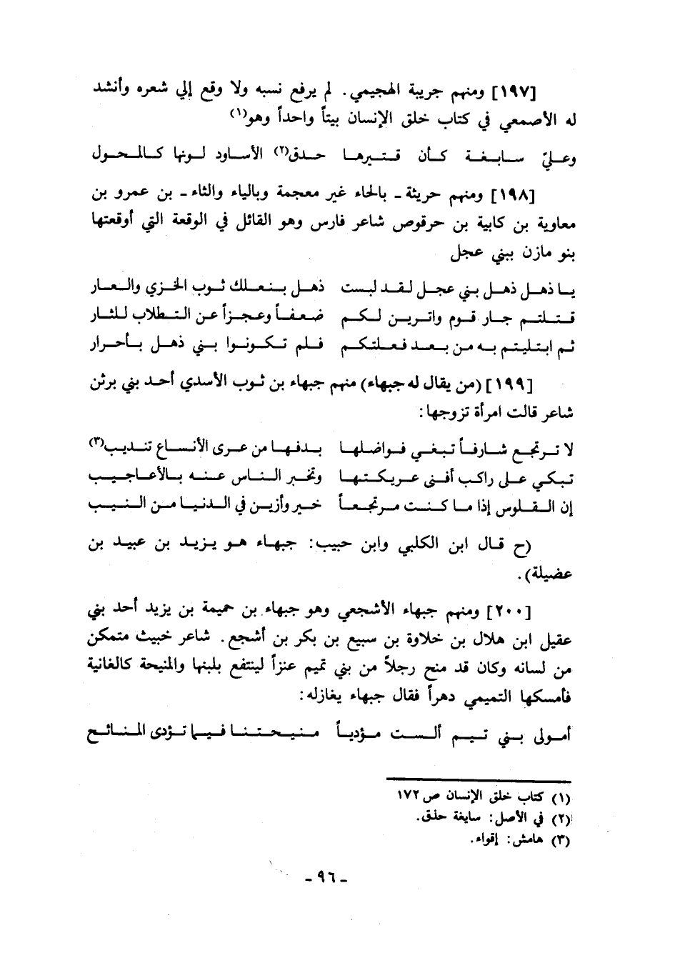 ومنهم جريبة الهجيمي. لم يرفع نسبه ولا وقع إلي شعره وأنشد له الأصمعي في كتاب خلق الإنسان بيتاً واحداً هو