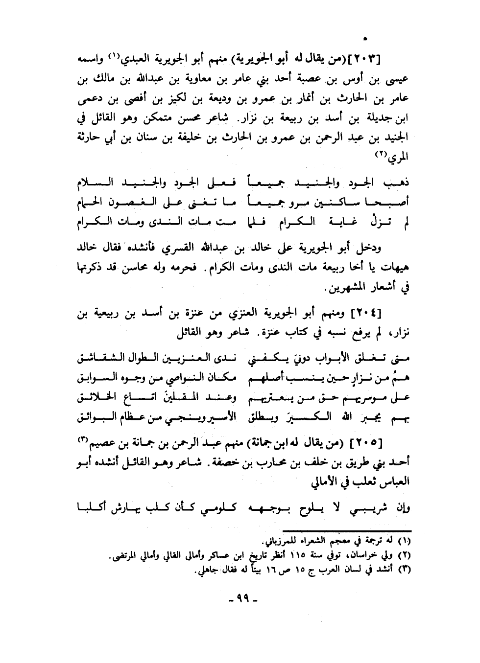 ومنهم أبو الجويرية العنزي من عنزة بن أسد بن ربيعة بن نزار، لم يرفع نسبه في كتاب عنزة. شاعر وهو القائل