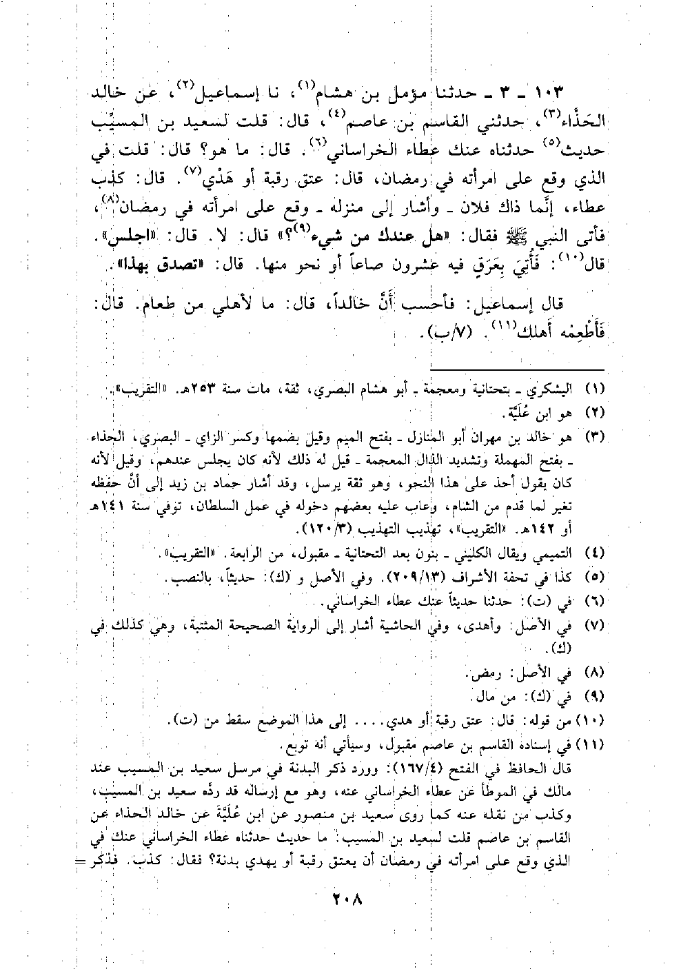 100- حَدَّثَنَا وَهْبُ بْنُ بَقِيَّةَ، عَنْ خَالِدٍ، عَنْ إِسْمَاعِيلَ، عَنْ حَكِيمٍ يَعْنِي ابْنَ جَابِرٍ، قَالَ: أُخْبِرْتُ أَنَّ رَسُولَ اللهِ صَلى الله عَليهِ وسَلم كَانَ يَتَسَحَّرُ فَجَاءَهُ بِلاَلٌ فَقَالَ: الصَّلاَةَ يَا رَسُولَ اللهِ فَسَكَتَ عنه فَلَمْ يَرْجِعْ إِلَيْهِ شَيْئًا فَرَجَعَ بِلاَلٌ فَقَالَ: الصَّلاَةَ يَا رَسُولَ اللهِ فَقَدْ أَصْبَحْتَ فَقَالَ رَسُولُ اللهِ صَلى الله عَليهِ وسَلم: يرحم اللهُ بِلاَلاً لَوْما بِلاَلٌ لَرَجَوْتُ أَنْ يُرَخَّصَ لَنَا إِلَى طُلُوعِ الشَّمْسِ.