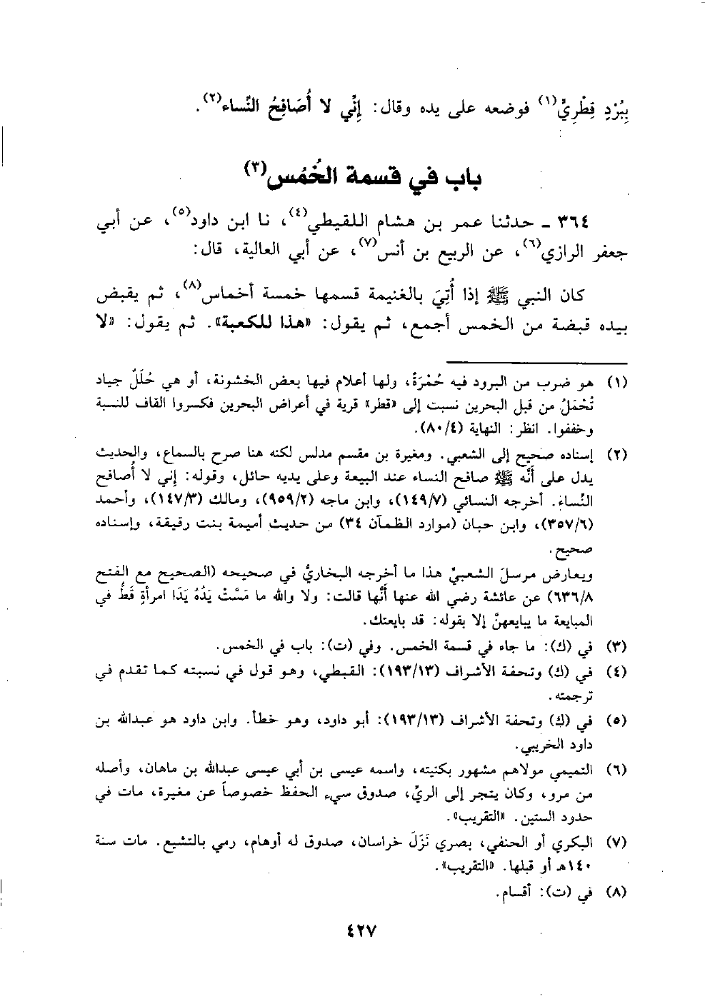 357- حَدَّثَنَا مُسَدَّدٌ، أَخْبَرَنَا عَبْدُ الوَهَّابِ، عَنْ حَبِيبِ بْنِ المُعَلِّمِ، عَنِ الحَسَنِ أَنَّ رَجُلاً مِنَ المُشْرِكِينَ خَرَجَ حَاجًّا فَلَمَّا رَجَعَ صَادِرًا لَقِيَهُ رَجُلٌ مِنَ المُسْلِمِينَ فَقَتَلَهُ، فَأَمَرَهُ النَّبِيُّ صَلى الله عَليهِ وسَلم أَنْ يُؤَدِّيَ دِيَتَهُ إِلَى أَهْلِهِ.