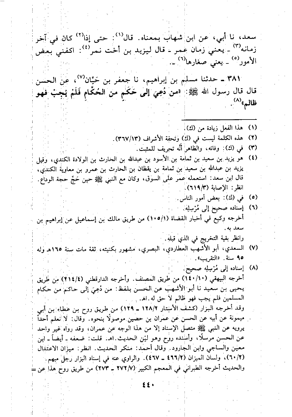 373- حَدَّثَنَا النُّفَيْلِيُّ، أَخْبَرَنَا زهير, وحدثنا مُوسَى، أَخْبَرَنَا حَمَّادٌ،- وَهَذَا حَدِيثُ زُهَيْرٍ- أَخْبَرَنَا عَطَاءُ بْنُ السَّائِبِ، عَنْ عَامِرٍ، أَنَّ أَعْرَابِيًّا، أَهْدَى لِرَسُولِ اللهِ صَلى الله عَليهِ وسَلم ظَبْيًا فَقَالَ: مِنْ أَيْنَ أَصَبْتَ هَذَا؟ قَالَ: رَمَيْتُهُ أَمْسِ، فَطَلَبْتُهُ فَأَعْجَزَنِي حَتَّى أَدْرَكَنِي المَسَاءُ فَرَجَعْتُ فَلَمَّا أَصْبَحْتُ اتَّبَعْتُ أَثَرَهُ فَوَجَدْتُهُ فِي غَارٍ، أَوْ فِي أَحْجَارٍ، وَهَذَا مِشْقَصِي فِيهِ أَعْرِفُهُ، قَالَ: بَاتَ عَنْكَ لَيْلَةً وَلاَ آمَنُ أَنْ تَكُونَ هَامَّةٌ أَعَانَتْكَ عَلَيْهِ، لاَ حَاجَةَ لِي فِيهِ.