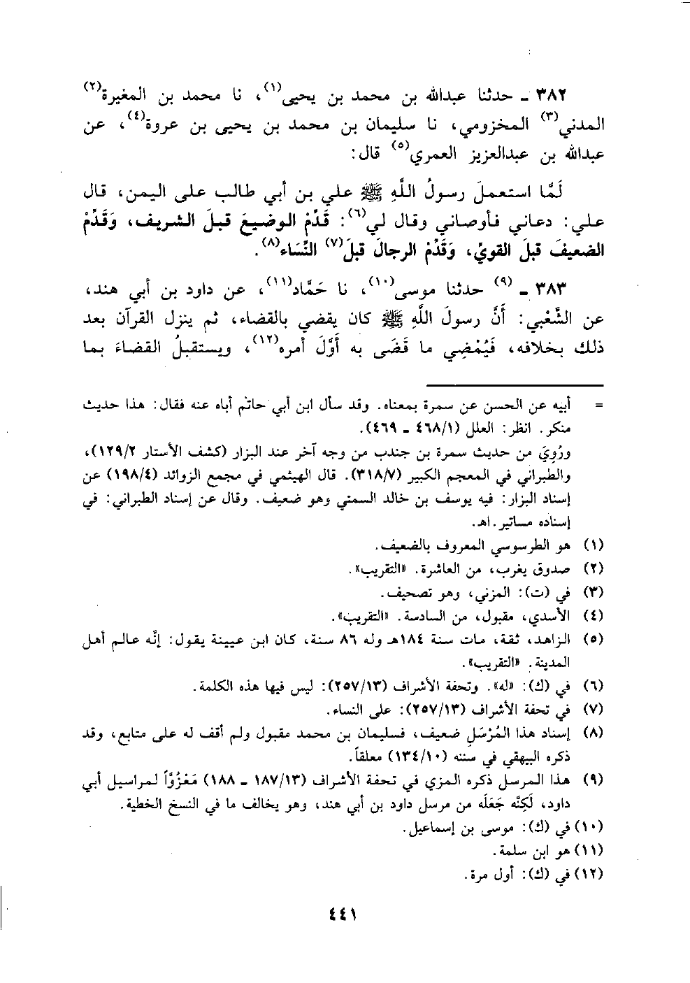 374- حَدَّثَنَا نَصْرُ بْنُ عَلِيٍّ، أَنبأنَا جَرِيرٌ، عَنْ مُوسَى بْنِ أَبِي عَائِشَةَ، عَنْ أَبِي رَزِينٍ، قَالَ: جَاءَ رَجُلٌ إِلَى النَّبِيِّ صَلى الله عَليهِ وسَلم بِصَيْدٍ فَقَالَ: إِنِّي رَمَيْتُهُ من اللَّيْلِ فَأَعْيَانِي، وَوَجَدْتُ سَهْمِي فِيهِ مِنَ الغَدِ وَقَدْ عَرَفْتُ سَهْمِي فَقَالَ: اللَّيْلُ خَلْقٌ مِنْ خَلْقِ اللهِ عَظِيمٌ، لَعَلَّهُ أَعَانَكَ عَلَيْهَا شَيْء انبذهَا عَنْكَ.