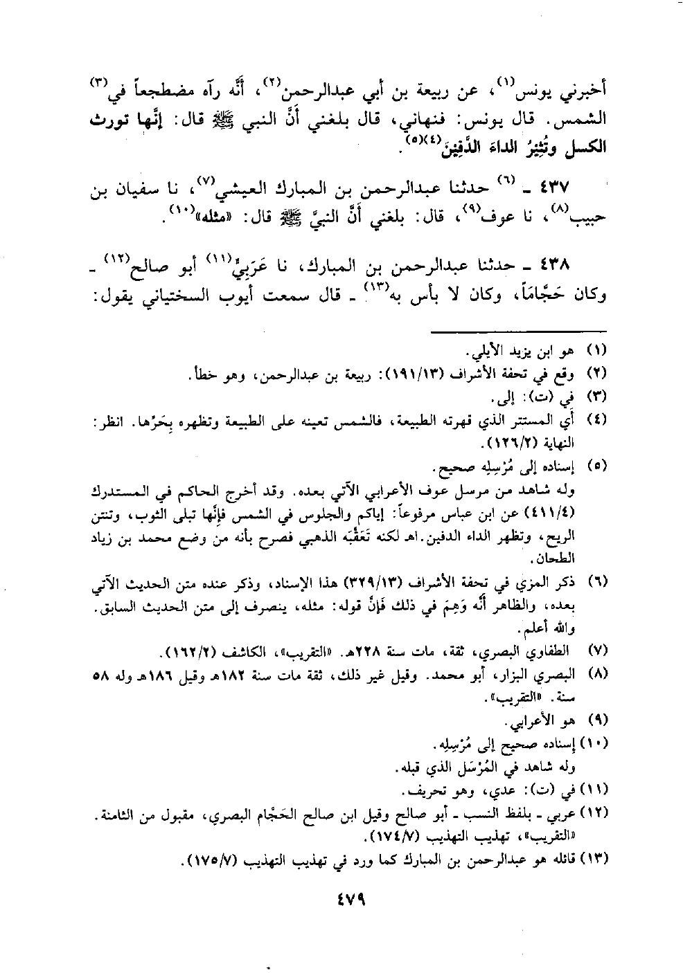 429- حَدَّثَنَا ابْنُ مُعَاذٍ، أَخْبَرَنَا أَبِي، أَخْبَرَنَا ابْنُ عَوْنٍ، قَالَ: أَتَيْتُ حَذَّاءً بِالمَدِينَةِ فَأَمَرْتُه أَنْ يُشَرِّكَ نَعْلَيَّ مُقَابَلَيْنِ، فَقَالَ لِي: أَفَلاَ أُشَرِّكُهُمَا كَمَا رَأَيْتُ نَعْلَ رَسُولِ اللهِ صَلى الله عَليهِ وسَلم؟ قُلْتُ: عِنْدَ مَنْ رَأَيْتَهَا؟ قَالَ: عِنْدَ فَاطِمَةَ بِنْتِ عُبَيْدِ اللهِ بْنِ عَبَّاسٍ، قُلْتُ: فَشَرِّكْهُمَا كَذَلِكَ، فَشَرَّكَهُمَا كِلْتَيْهِمَا عَلَى اليَمِينِ.
