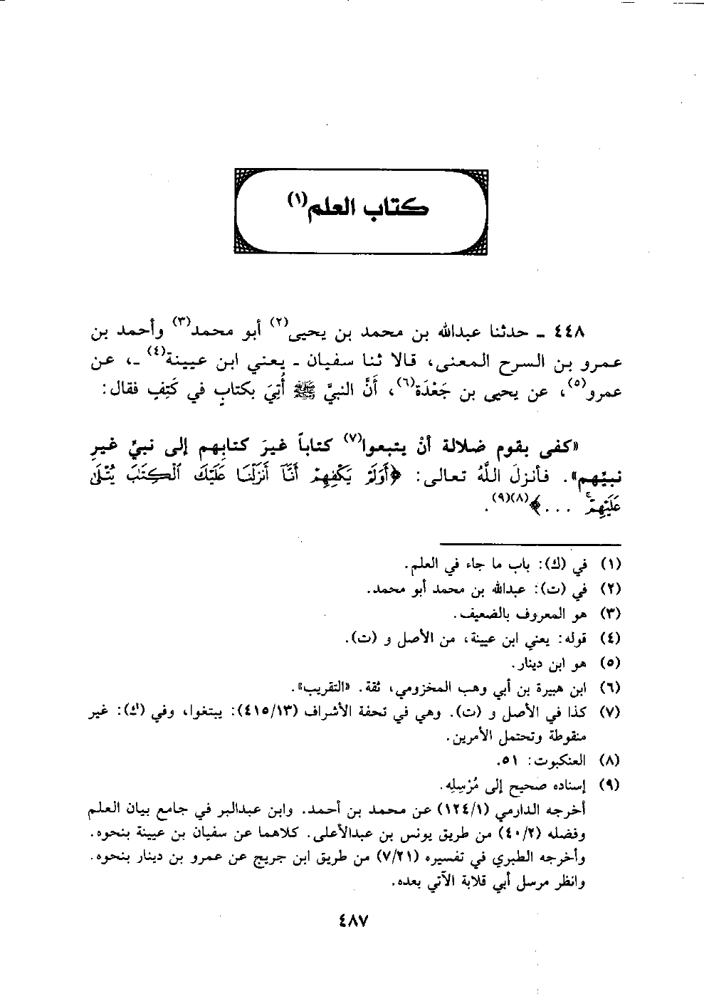 441- حدثنا أحمد بن سعيد, نا ابن وهب, أخبرني هشام بن سعد, وحفص بن ميسرة, عن زيد بن أسلم, أن رسول الله صَلى الله عَليه وسَلم نهى عن الكي, وأمر باللدود, ونهى عن العلاق, وأمر بالسعوط.