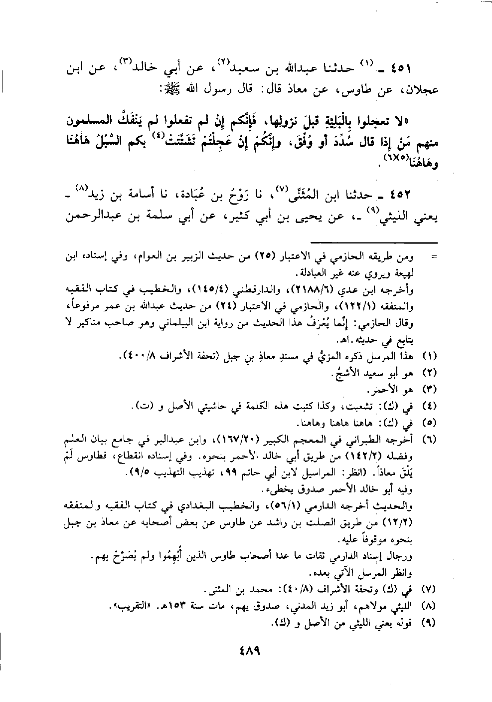 444- حَدَّثَنَا ابْنُ نُفَيْلٍ، أَخْبَرَنَا زُهَيْرٌ، قال: حَدَّثَتْنِي امْرَأَةٌ، مِنْ أَهْلِي عَنْ مُلَيْكَةَ بِنْتِ عَمْرٍو، أَنَّهَا وُصِفَتْ لَهَا سَمْنُ بَقَرٍ مِنْ وَجَعٍ كَانَ بِحَلْقِهَا وَقَالَتْ: قَالَ رَسُولُ اللهِ صَلى الله عَليهِ وسَلم: أَلْبَانُهَا شِفَاءٌ، وَسَمْنُهَا دَوَاءٌ، وَلَحومُهَا دَاءٌ.