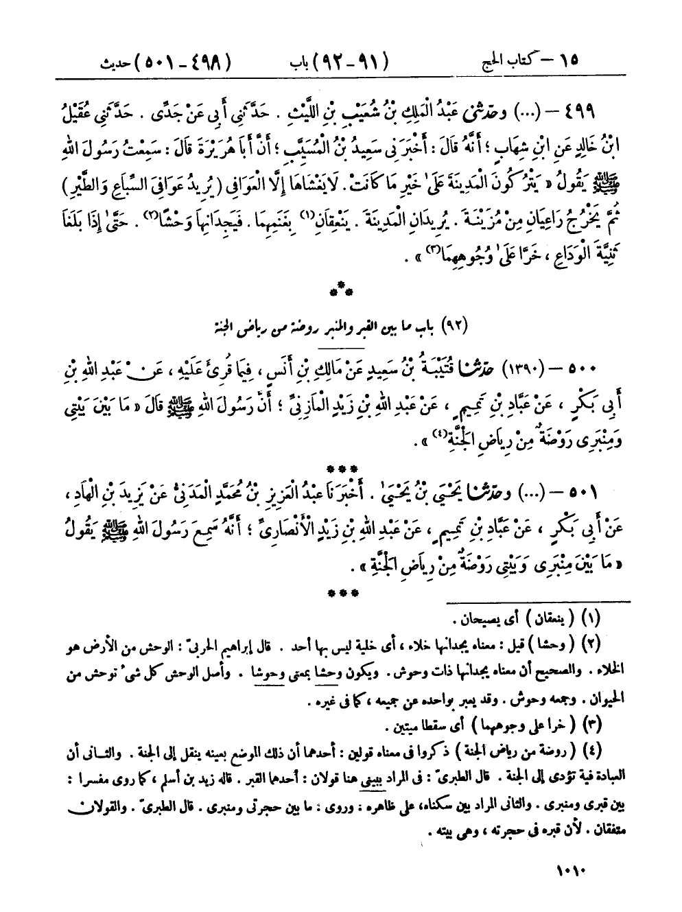 ٩٢ - بَابُ مَا بَيْنَ الْقَبْرِ وَالْمِنْبَرِ رَوْضَةٌ مِنْ رِيَاضِ الْجَنَّةِ