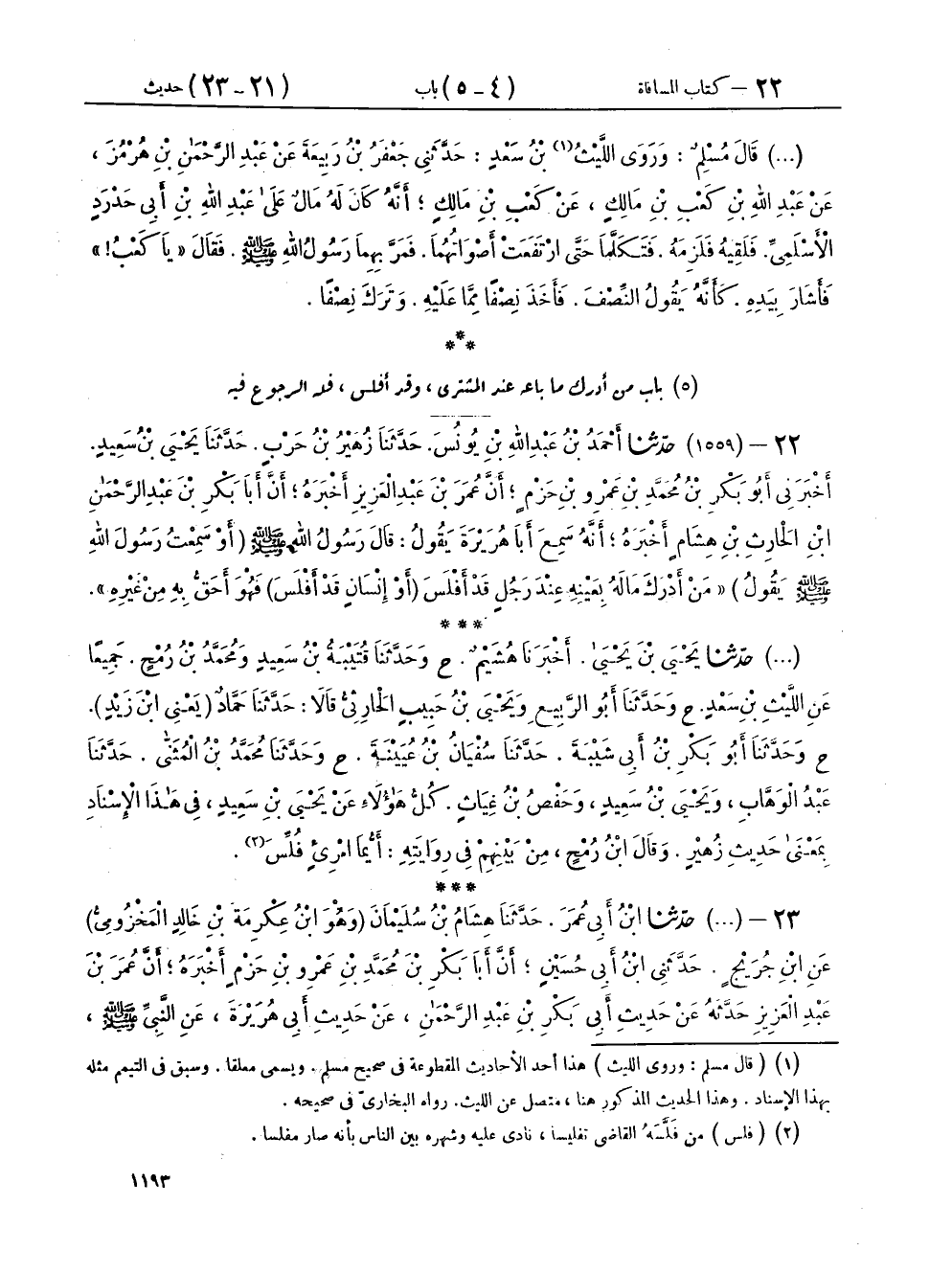 (١٥٥٩) - حَدَّثَنَا يَحْيَى بْنُ يَحْيَى، أَخْبَرَنَا هُشَيْمٌ، ح وحَدَّثَنَا قُتَيْبَةُ بْنُ سَعِيدٍ، وَمُحَمَّدُ بْنُ رُمْحٍ، جَمِيعًا عَنِ اللَّيْثِ بْنِ سَعْدٍ، ح وحَدَّثَنَا أَبُو الرَّبِيعِ، وَيَحْيَى بْنُ حَبِيبٍ الْحَارِثِيُّ، قَالَا: حَدَّثَنَا حَمَّادٌ يَعْنِي ابْنَ زَيْدٍ، ح وحَدَّثَنَا أَبُو بَكْرِ بْنُ أَبِي شَيْبَةَ، حَدَّثَنَا سُفْيَانُ بْنُ عُيَيْنَةَ، ح وحَدَّثَنَا مُحَمَّدُ بْنُ الْمُثَنَّى، حَدَّثَنَا عَبْدُ الْوَهَّابِ، وَيَحْيَى بْنُ سَعِيدٍ، وَحَفْصُ بْنُ غِيَاثٍ، كُلُّ هَؤُلَاءِ، عَنْ يَحْيَى بْنِ سَعِيدٍ، فِي هَذَا الْإِسْنَادِ بِمَعْنَى حَدِيثِ زُهَيْرٍ، وقَالَ ابْنُ رُمْحٍ مِنْ بَيْنِهِمْ فِي رِوَايَتِهِ: «أَيُّمَا امْرِئٍ فُلِّسَ»