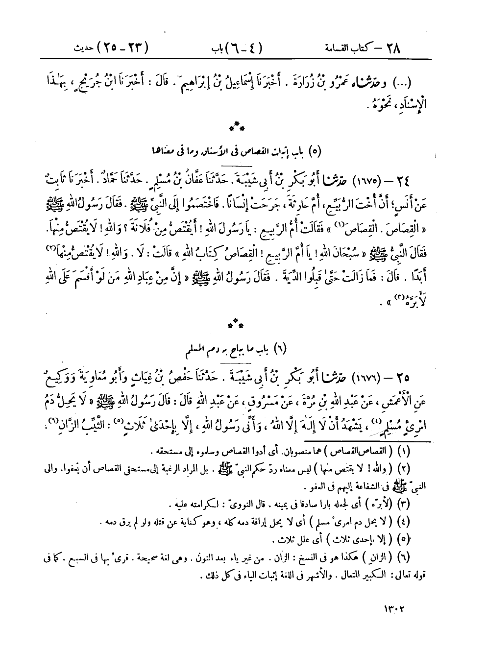 ٢٥ - (١٦٧٦) حَدَّثَنَا أَبُو بَكْرِ بْنُ أَبِي شَيْبَةَ، حَدَّثَنَا حَفْصُ بْنُ غِيَاثٍ، وَأَبُو مُعَاوِيَةَ، وَوَكِيعٌ، عَنِ الْأَعْمَشِ، عَنْ عَبْدِ اللهِ بْنِ مُرَّةَ، عَنْ مَسْرُوقٍ، عَنْ عَبْدِ اللهِ، قَالَ: قَالَ رَسُولُ اللهِ صَلَّى اللهُ عَلَيْهِ وَسَلَّمَ: " لَا يَحِلُّ دَمُ امْرِئٍ مُسْلِمٍ، يَشْهَدُ أَنْ لَا إِلَهَ إِلَّا اللهُ وَأَنِّي رَسُولُ اللهِ، إِلَّا بِإِحْدَى ثَلَاثٍ: الثَّيِّبُ الزَّانِي، وَالنَّفْسُ بِالنَّفْسِ، وَالتَّارِكُ لِدِينِهِ الْمُفَارِقُ لِلْجَمَاعَةِ "
