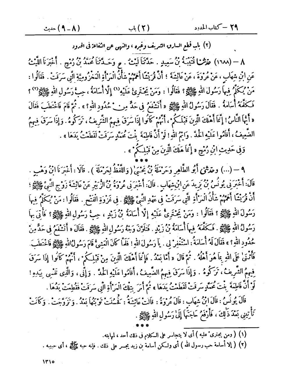 ٢ - بَابُ قَطْعِ السَّارِقِ الشَّرِيفِ وَغَيْرِهِ، وَالنَّهْيِ عَنِ الشَّفَاعَةِ فِي الْحُدُودِ