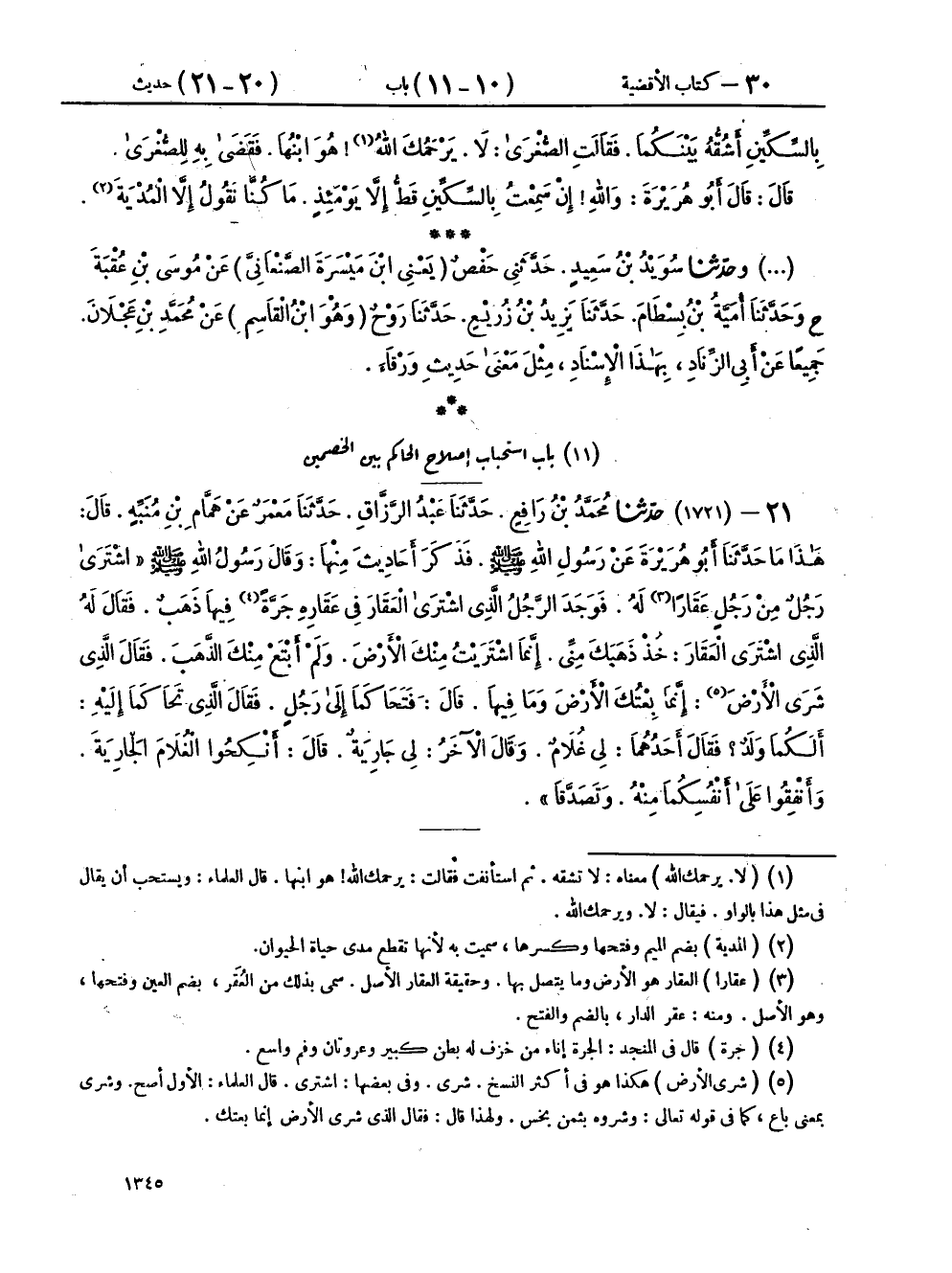 ٢١ - (١٧٢١) حَدَّثَنَا مُحَمَّدُ بْنُ رَافِعٍ، حَدَّثَنَا عَبْدُ الرَّزَّاقِ، حَدَّثَنَا مَعْمَرٌ، عَنْ هَمَّامِ بْنِ مُنَبِّهٍ، قَالَ: هَذَا مَا حَدَّثَنَا أَبُو هُرَيْرَةَ، عَنْ رَسُولِ اللهِ صَلَّى اللهُ عَلَيْهِ وَسَلَّمَ، فَذَكَرَ أَحَادِيثَ مِنْهَا، وَقَالَ رَسُولُ اللهِ صَلَّى اللهُ عَلَيْهِ وَسَلَّمَ: " اشْتَرَى رَجُلٌ مِنْ رَجُلٍ عَقَارًا لَهُ، فَوَجَدَ الرَّجُلُ الَّذِي اشْتَرَى الْعَقَارَ فِي عَقَارِهِ جَرَّةً فِيهَا ذَهَبٌ، فَقَالَ لَهُ الَّذِي اشْتَرَى الْعَقَارَ: خُذْ ذَهَبَكَ مِنِّي، إِنَّمَا اشْتَرَيْتُ مِنْكَ الْأَرْضَ، وَلَمْ أَبْتَعْ مِنْكَ الذَّهَبَ، فَقَالَ الَّذِي شَرَى الْأَرْضَ: إِنَّمَا بِعْتُكَ الْأَرْضَ، وَمَا فِيهَا، قَالَ: فَتَحَاكَمَا إِلَى رَجُلٍ، فَقَالَ الَّذِي تَحَاكَمَا إِلَيْهِ: أَلَكُمَا وَلَدٌ؟ فَقَالَ أَحَدُهُمَا: لِي غُلَامٌ، وَقَالَ الْآخَرُ لِي جَارِيَةٌ، قَالَ: أَنْكِحُوا الْغُلَامَ الْجَارِيَةَ، وَأَنْفِقُوا عَلَى أَنْفُسِكُمَا مِنْهُ وَتَصَدَّقَا "