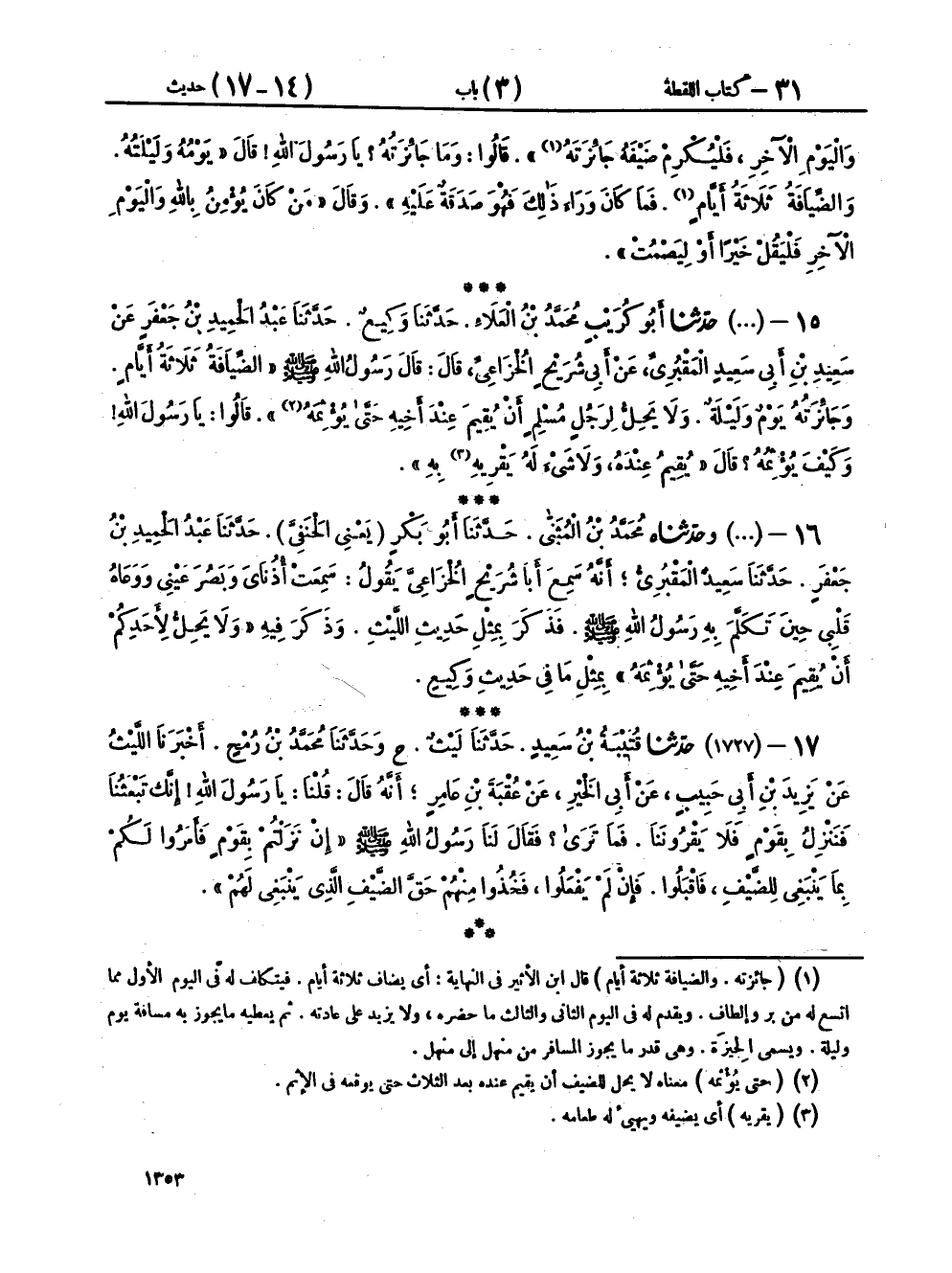 [ ش (حتى يؤثمه) معناه لا يحل للضيف أن يقيم عنده بعد الثلاث حتى يوقعه في الإثم