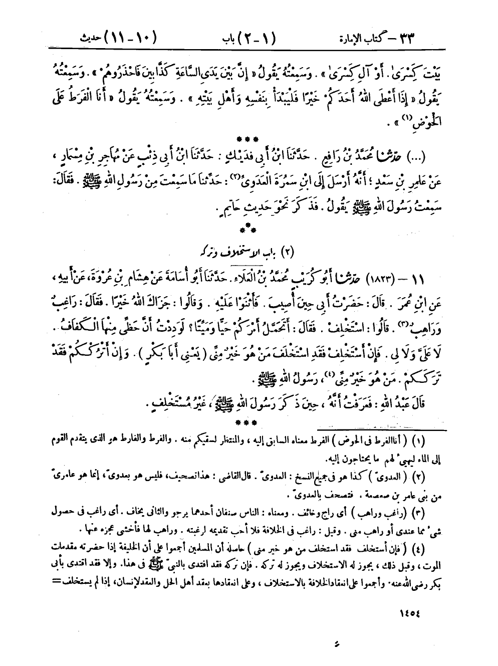 ٢ - بَابُ الِاسْتِخْلَافِ وَتَرْكِهِ