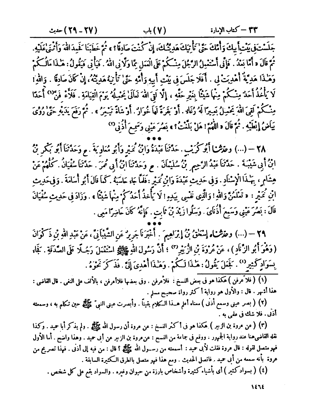 ٢٩ - (١٨٣٢) وَحَدَّثَنَاهُ إِسْحَاقُ بْنُ إِبْرَاهِيمَ، أَخْبَرَنَا جَرِيرٌ، عَنِ الشَّيْبَانِيِّ، عَنْ عَبْدِ اللهِ بْنِ ذَكْوَانَ وَهُوَ أَبُو الزِّنَادِ، عَنْ عُرْوَةَ بْنِ الزُّبَيْرِ، عَنْ أَبِي حُمَيْدٍ السَّاعِدِيِّ، أَنَّ رَسُولَ اللهِ صَلَّى اللهُ عَلَيْهِ وَسَلَّمَ، اسْتَعْمَلَ رَجُلًا عَلَى الصَّدَقَةِ، فَجَاءَ بِسَوَادٍ كَثِيرٍ، فَجَعَلَ يَقُولُ: هَذَا لَكُمْ، وَهَذَا أُهْدِيَ إِلَيَّ، فَذَكَرَ نَحْوَهُ، قَالَ عُرْوَةُ: فَقُلْتُ لِأَبِي حُمَيْدٍ السَّاعِدِيِّ: أَسَمِعْتَهُ مِنْ رَسُولِ اللهِ صَلَّى اللهُ عَلَيْهِ وَسَلَّمَ؟ فَقَالَ: «مِنْ فِيهِ إِلَى أُذُنِي»
