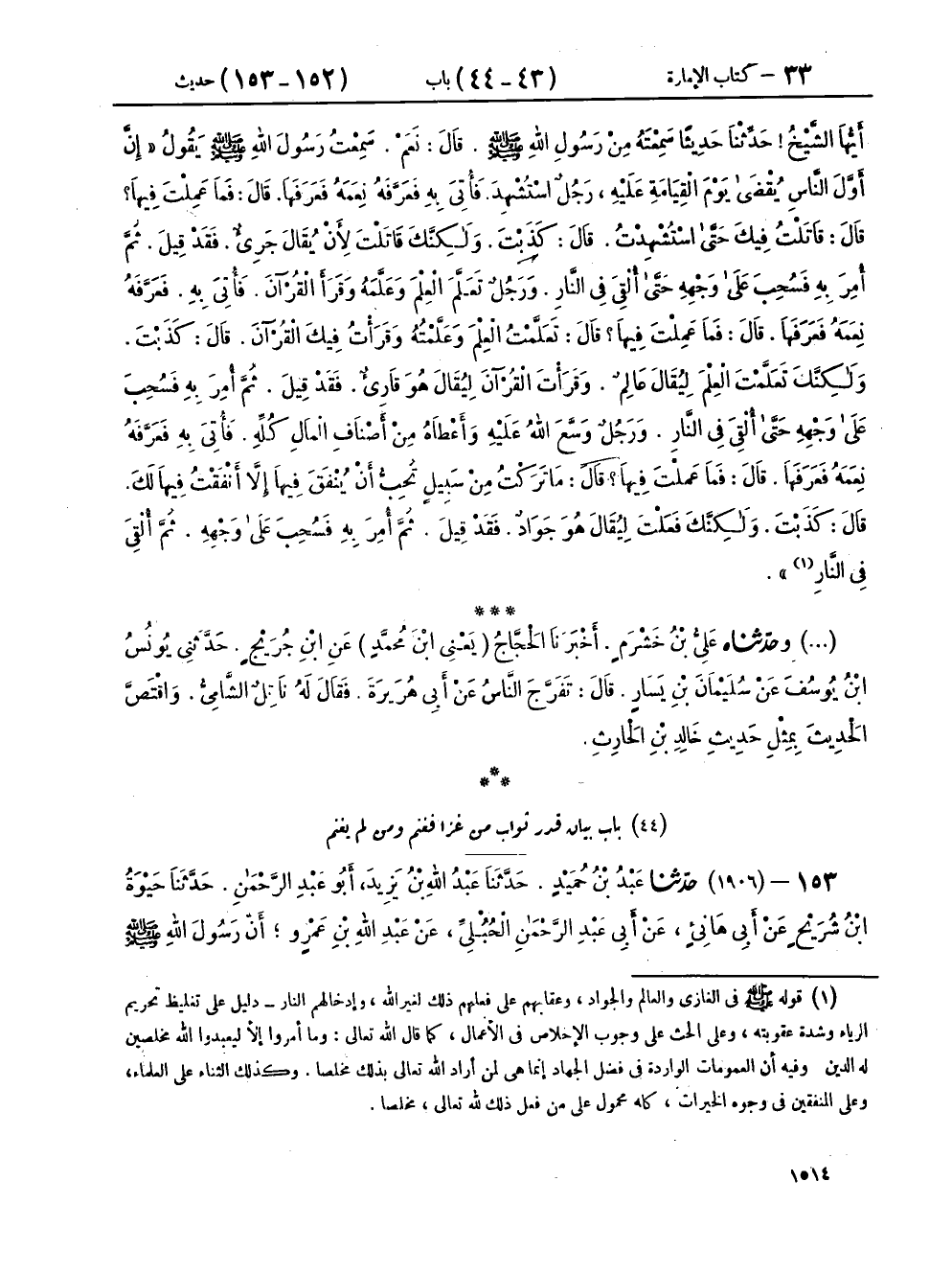 ٤٤ - بَابُ بَيَانِ قَدْرِ ثَوَابِ مَنْ غَزَا فَغَنِمَ، وَمَنْ لَمْ يَغْنَمْ
