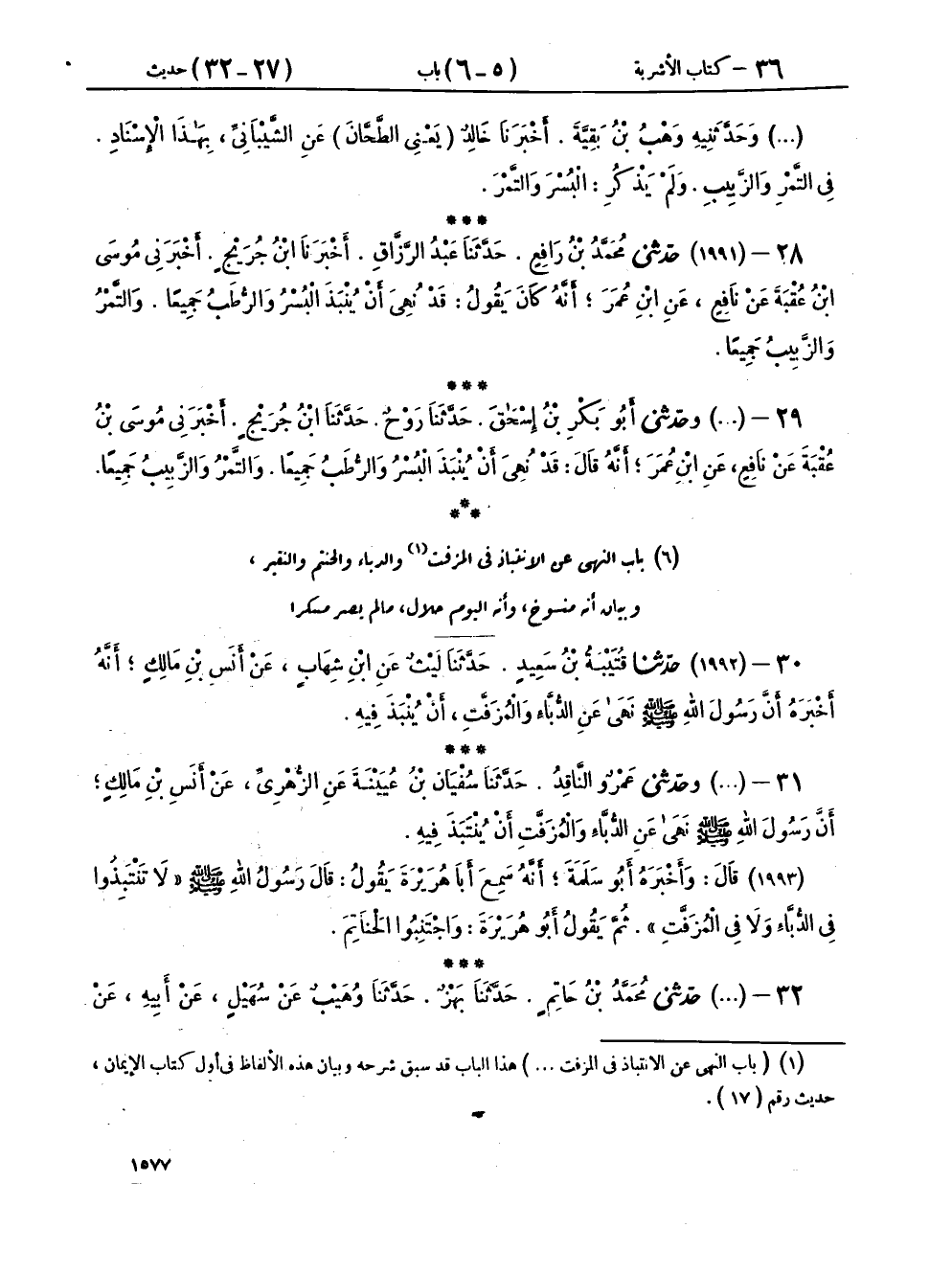 [ ش (باب النهي عن الانتباذ في المزفت) هذا الباب قد سبق شرحه وبيان هذه الألفاظ في أول كتاب الإيمان حديث رقم (١٧)]