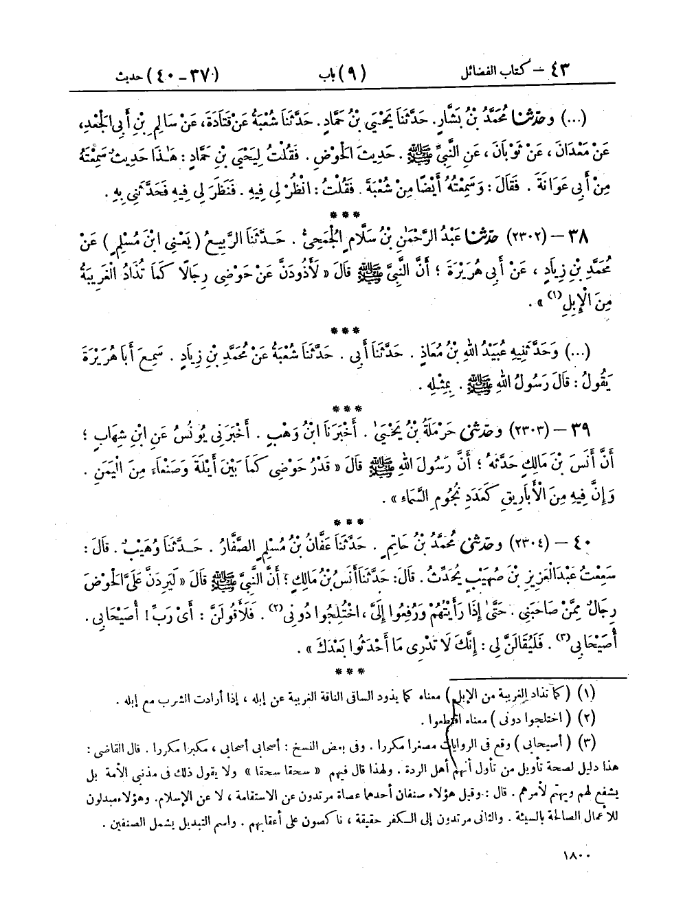 ٣٧ - وَحَدَّثَنَا مُحَمَّدُ بْنُ بَشَّارٍ، حَدَّثَنَا يَحْيَى بْنُ حَمَّادٍ، حَدَّثَنَا شُعْبَةُ، عَنْ قَتَادَةَ، عَنْ سَالِمِ بْنِ أَبِي الْجَعْدِ، عَنْ مَعْدَانَ، عَنْ ثَوْبَانَ، عَنِ النَّبِيِّ صَلَّى اللهُ عَلَيْهِ وَسَلَّمَ حَدِيثَ الْحَوْضِ فَقُلْتُ: لِيَحْيَى بْنِ حَمَّادٍ: هَذَا حَدِيثٌ سَمِعْتَهُ مِنْ أَبِي عَوَانَةَ، فَقَالَ: وَسَمِعْتُهُ أَيْضًا مِنْ شُعْبَةَ فَقُلْتُ: انْظُرْ لِي فِيهِ، فَنَظَرَ لِي فِيهِ فَحَدَّثَنِي بِهِ