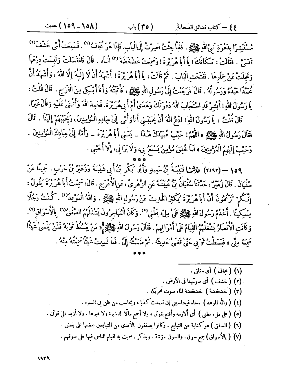 ١٥٩ - (٢٤٩٢) حَدَّثَنَا قُتَيْبَةُ بْنُ سَعِيدٍ، وَأَبُو بَكْرِ بْنُ أَبِي شَيْبَةَ، وَزُهَيْرُ بْنُ حَرْبٍ، جَمِيعًا عَنْ سُفْيَانَ، قَالَ زُهَيْرٌ: حَدَّثَنَا سُفْيَانُ بْنُ عُيَيْنَةَ، عَنِ الزُّهْرِيِّ، عَنِ الْأَعْرَجِ، قَالَ: سَمِعْتُ أَبَا هُرَيْرَةَ، يَقُولُ: إِنَّكُمْ تَزْعُمُونَ أَنَّ أَبَا هُرَيْرَةَ، يُكْثِرُ الْحَدِيثَ عَنْ رَسُولِ اللهِ صَلَّى اللهُ عَلَيْهِ وَسَلَّمَ، وَاللهُ الْمَوْعِدُ، كُنْتُ رَجُلًا مِسْكِينًا، أَخْدُمُ رَسُولَ اللهِ صَلَّى اللهُ عَلَيْهِ وَسَلَّمَ عَلَى مِلْءِ بَطْنِي، وَكَانَ الْمُهَاجِرُونَ يَشْغَلُهُمُ الصَّفْقُ بِالْأَسْوَاقِ وَكَانَتِ الْأَنْصَارُ يَشْغَلُهُمُ الْقِيَامُ عَلَى أَمْوَالِهِمْ، فَقَالَ رَسُولُ اللهِ صَلَّى اللهُ عَلَيْهِ وَسَلَّمَ: «مَنْ يَبْسُطْ ثَوْبَهُ فَلَنْ يَنْسَى شَيْئًا سَمِعَهُ مِنِّي» فَبَسَطْتُ ثَوْبِي حَتَّى قَضَى حَدِيثَهُ، ثُمَّ ضَمَمْتُهُ إِلَيَّ، فَمَا نَسِيتُ شَيْئًا سَمِعْتُهُ مِنْهُ