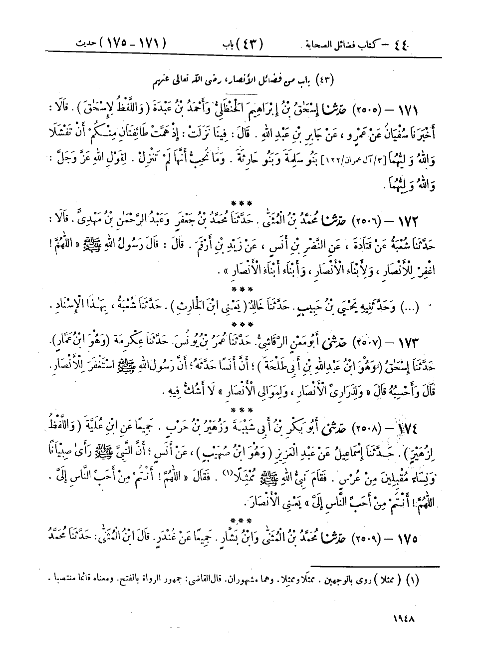 ١٧٢ - (٢٥٠٦) حَدَّثَنَا مُحَمَّدُ بْنُ الْمُثَنَّى، حَدَّثَنَا مُحَمَّدُ بْنُ جَعْفَرٍ، وَعَبْدُ الرَّحْمَنِ بْنُ مَهْدِيٍّ، قَالَا: حَدَّثَنَا شُعْبَةُ، عَنْ قَتَادَةَ، عَنِ النَّضْرِ بْنِ أَنَسٍ، عَنْ زَيْدِ بْنِ أَرْقَمَ، قَالَ: قَالَ رَسُولُ اللهِ صَلَّى اللهُ عَلَيْهِ وَسَلَّمَ: «اللهُمَّ اغْفِرْ لِلْأَنْصَارِ، وَلِأَبْنَاءِ الْأَنْصَارِ، وَأَبْنَاءِ أَبْنَاءِ الْأَنْصَارِ»