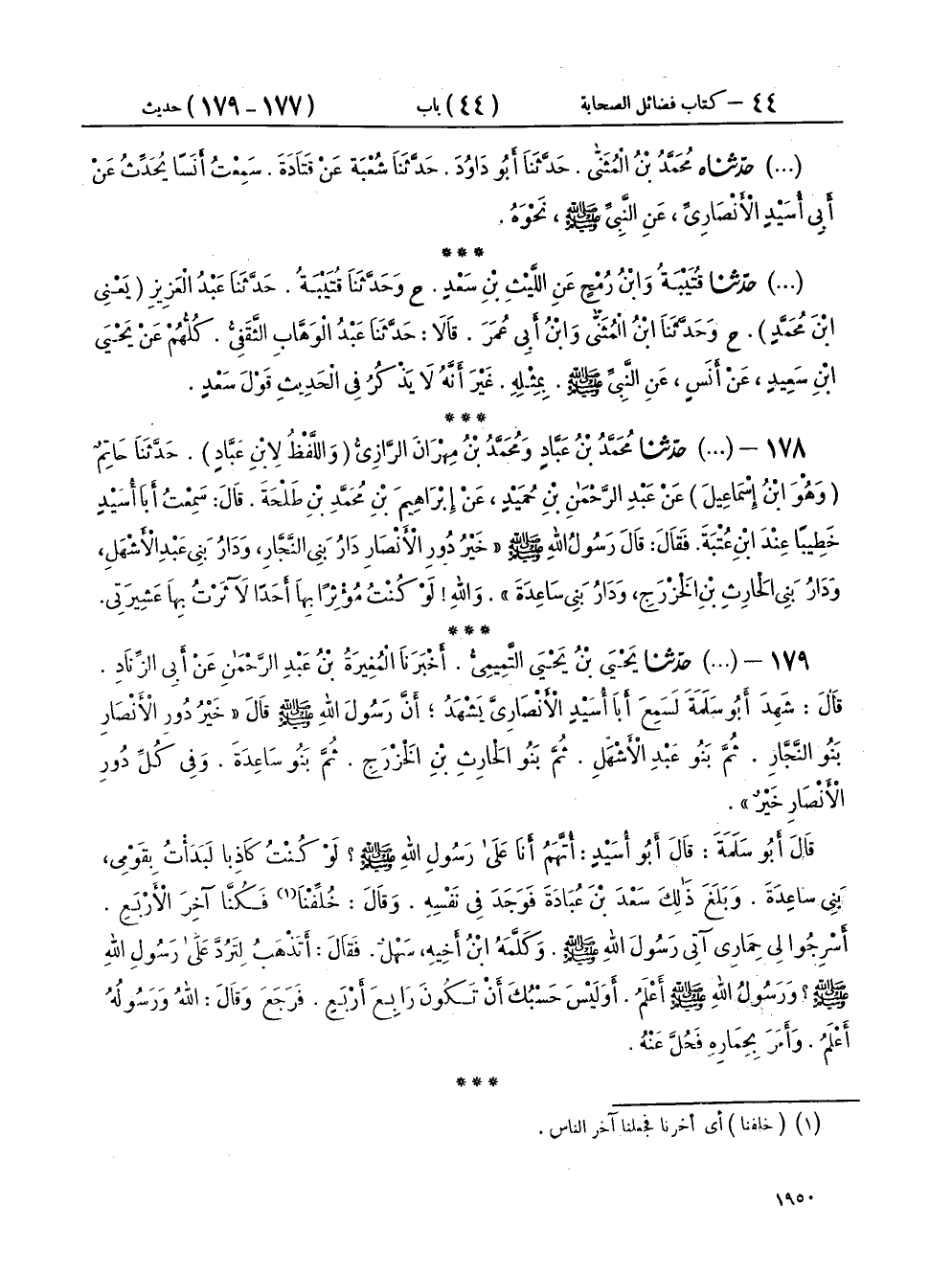 ١٧٧ - حَدَّثَنَاهُ مُحَمَّدُ بْنُ الْمُثَنَّى، حَدَّثَنَا أَبُو دَاوُدَ، حَدَّثَنَا شُعْبَةُ، عَنْ قَتَادَةَ، سَمِعْتُ أَنَسًا، يُحَدِّثُ عَنْ أَبِي أُسَيْدٍ الْأَنْصَارِيِّ، عَنِ النَّبِيِّ صَلَّى اللهُ عَلَيْهِ وَسَلَّمَ نَحْوَهُ.