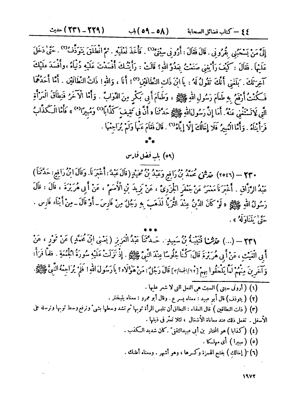 ٢٣٠ - (٢٥٤٦) حَدَّثَنِي مُحَمَّدُ بْنُ رَافِعٍ، وَعَبْدُ بْنُ حُمَيْدٍ، - قَالَ عَبْدٌ: أَخْبَرَنَا وقَالَ ابْنُ رَافِعٍ حَدَّثَنَا - عَبْدُ الرَّزَّاقِ، أَخْبَرَنَا مَعْمَرٌ، عَنْ جَعْفَرٍ الْجَزَرِيِّ، عَنْ يَزِيدَ بْنِ الْأَصَمِّ، عَنْ أَبِي هُرَيْرَةَ، قَالَ: قَالَ رَسُولُ اللهِ صَلَّى اللهُ عَلَيْهِ وَسَلَّمَ: «لَوْ كَانَ الدِّينُ عِنْدَ الثُّرَيَّا، لَذَهَبَ بِهِ رَجُلٌ مِنْ فَارِسَ - أَوْ قَالَ - مِنْ أَبْنَاءِ فَارِسَ حَتَّى يَتَنَاوَلَهُ»