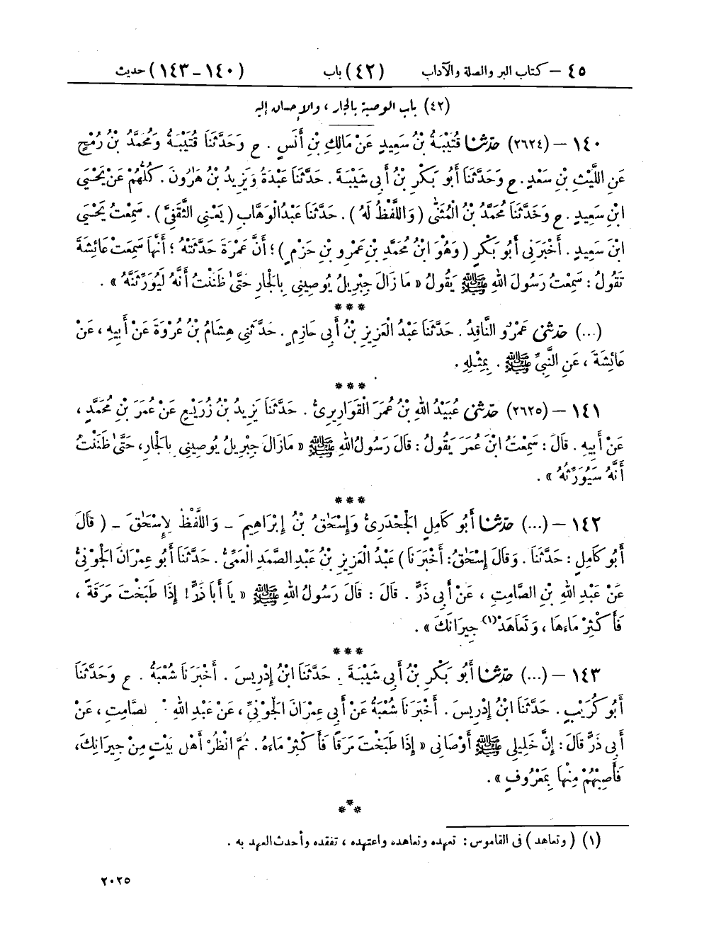 ٤٢ - بَابُ الْوَصِيَّةِ بِالْجَارِ وَالْإِحْسَانِ إِلَيْهِ