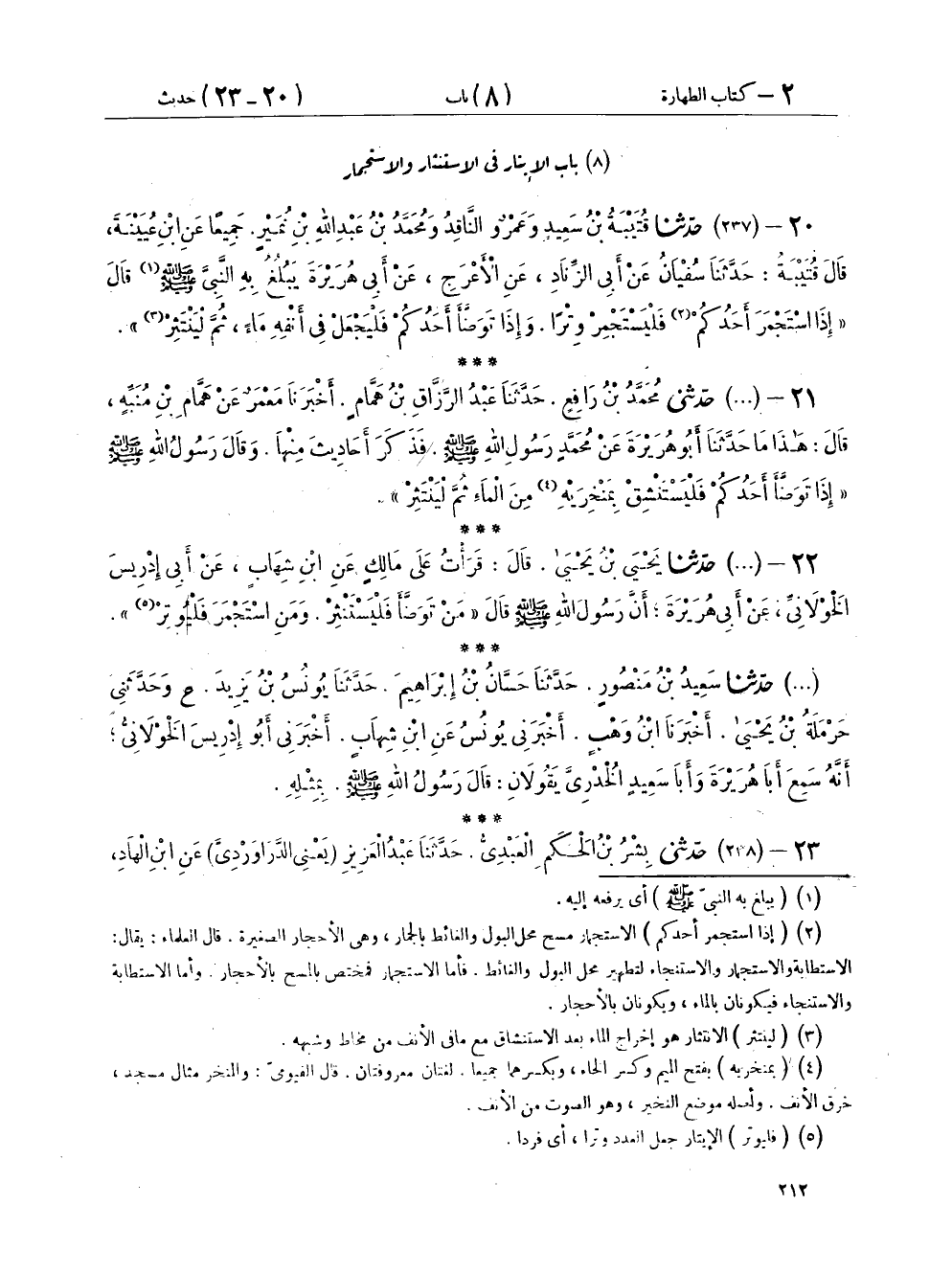 ٨ - بَابُ الْإِيتَارِ فِي الَاسْتِنْثَارِ وَالَاسْتِجْمَارِ