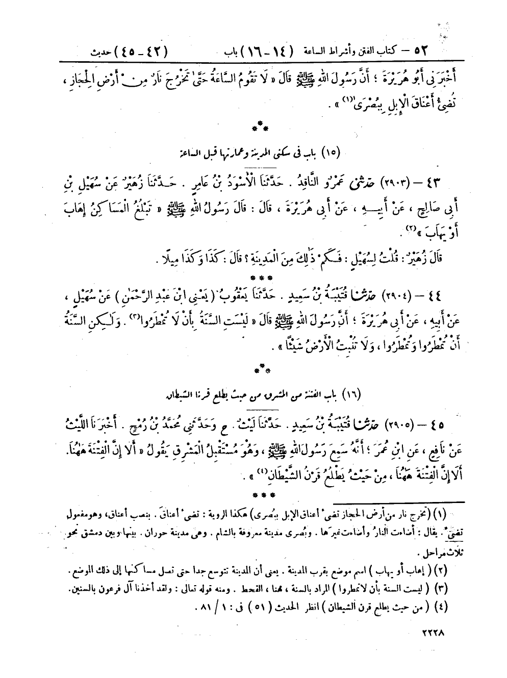 ٤٣ - (٢٩٠٣) حَدَّثَنِي عَمْرٌو النَّاقِدُ، حَدَّثَنَا الْأَسْوَدُ بْنُ عَامِرٍ، حَدَّثَنَا زُهَيْرٌ، عَنْ سُهَيْلِ بْنِ أَبِي صَالِحٍ، عَنْ أَبِيهِ، عَنْ أَبِي هُرَيْرَةَ، قَالَ: قَالَ رَسُولُ اللهِ صَلَّى اللهُ عَلَيْهِ وَسَلَّمَ: «تَبْلُغُ الْمَسَاكِنُ إِهَابَ - أَوْ يَهَابَ -»، قَالَ زُهَيْرٌ: قُلْتُ لِسُهَيْلٍ: فَكَمْ ذَلِكَ مِنَ الْمَدِينَةِ؟ قَالَ: كَذَا وَكَذَا مِيلًا