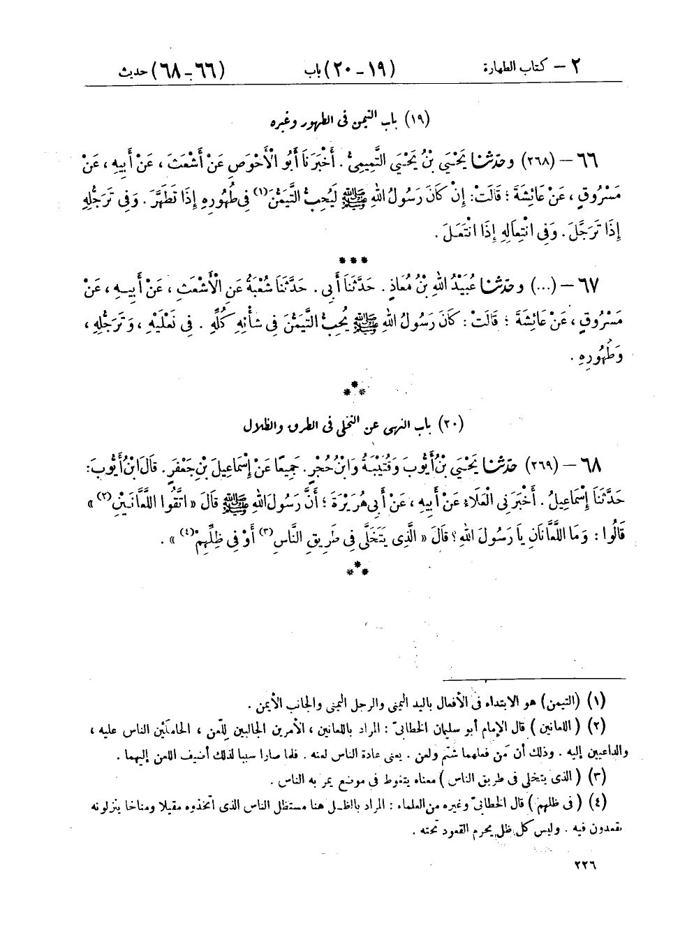 ١٩ - بَابُ التَّيمُّنِ فِي الطُّهُورِ وَغَيْرِهِ