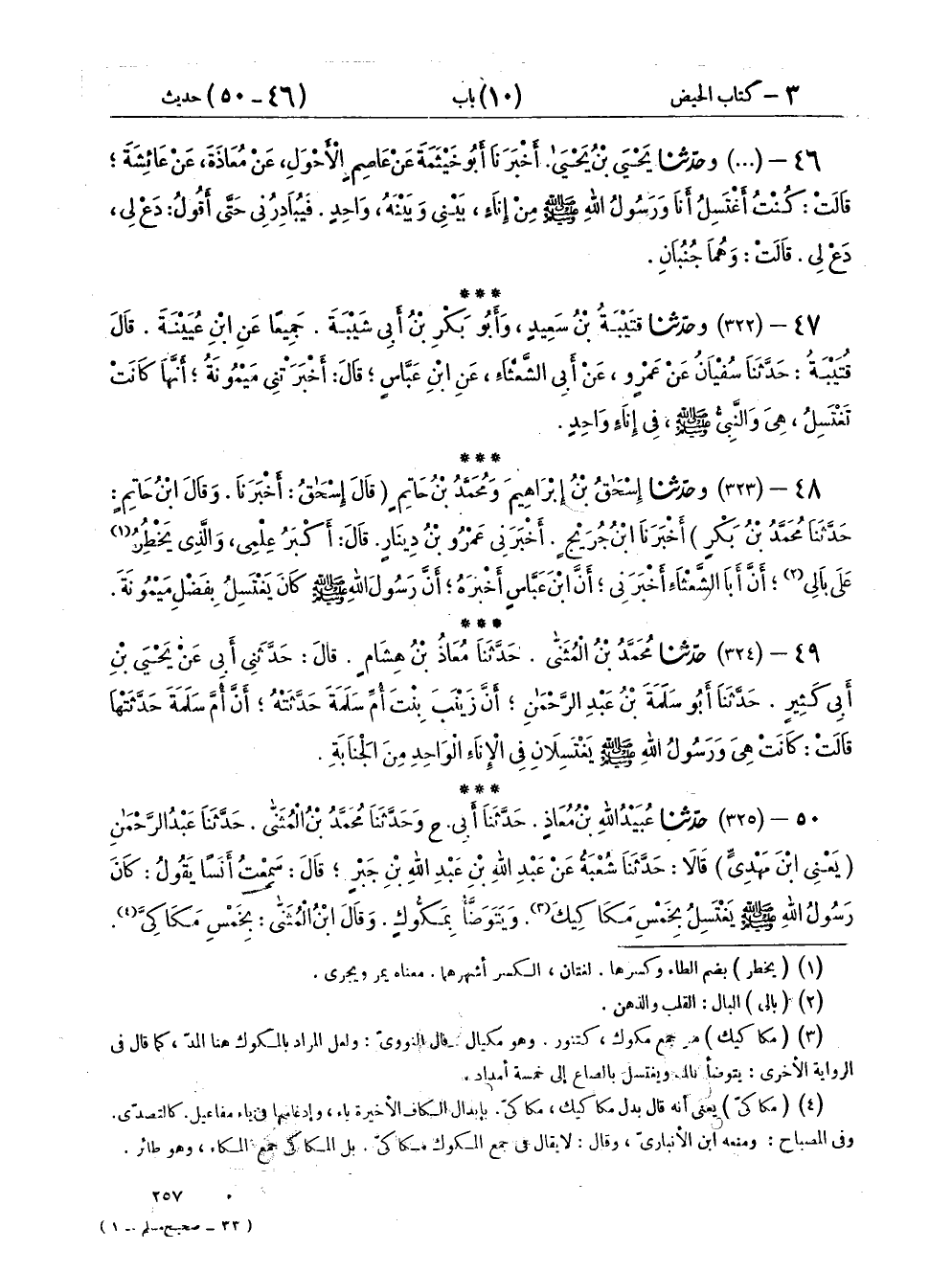 ٤٧ - (٣٢٢) وَحَدَّثَنَا قُتَيْبَةُ بْنُ سَعِيدٍ، وَأَبُو بَكْرِ بْنُ أَبِي شَيْبَةَ، جَمِيعًا عَنِ ابْنِ عُيَيْنَةَ، قَالَ قُتَيْبَةُ: حَدَّثَنَا سُفْيَانُ، عَنْ عَمْرٍو، عَنْ أَبِي الشَّعْثَاءِ، عَنِ ابْنِ عَبَّاسٍ، قَالَ: أَخْبَرَتْنِي مَيْمُونَةُ: «أَنَّهَا كَانَتْ تَغْتَسِلُ هِيَ وَالنَّبِيُّ صَلَّى اللهُ عَلَيْهِ وَسَلَّمَ فِي إِنَاءٍ وَاحِدٍ»