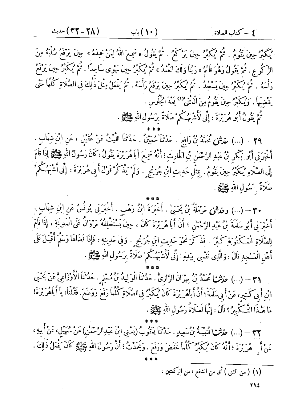 ٢٩ - (٣٩٢) حَدَّثَنِي مُحَمَّدُ بْنُ رَافِعٍ، حَدَّثَنَا حُجَيْنٌ، حَدَّثَنَا اللَّيْثُ، عَنْ عُقَيْلٍ، عَنِ ابْنِ شِهَابٍ، أَخْبَرَنِي أَبُو بَكْرِ بْنُ عَبْدِ الرَّحْمَنِ بْنِ الْحَارِثِ، أَنَّهُ سَمِعَ أَبَا هُرَيْرَةَ يَقُولُ: كَانَ رَسُولُ اللهِ صَلَّى اللهُ عَلَيْهِ وَسَلَّمَ إِذَا قَامَ إِلَى الصَّلَاةِ يُكَبِّرُ حِينَ يَقُومُ بِمِثْلِ حَدِيثِ ابْنِ جُرَيْجٍ وَلَمْ يَذْكُرْ قَوْلَ أَبِي هُرَيْرَةَ إِنِّي أَشْبَهُكُمْ صَلَاةً بِرَسُولِ اللهِ صَلَّى اللهُ عَلَيْهِ وَسَلَّمَ