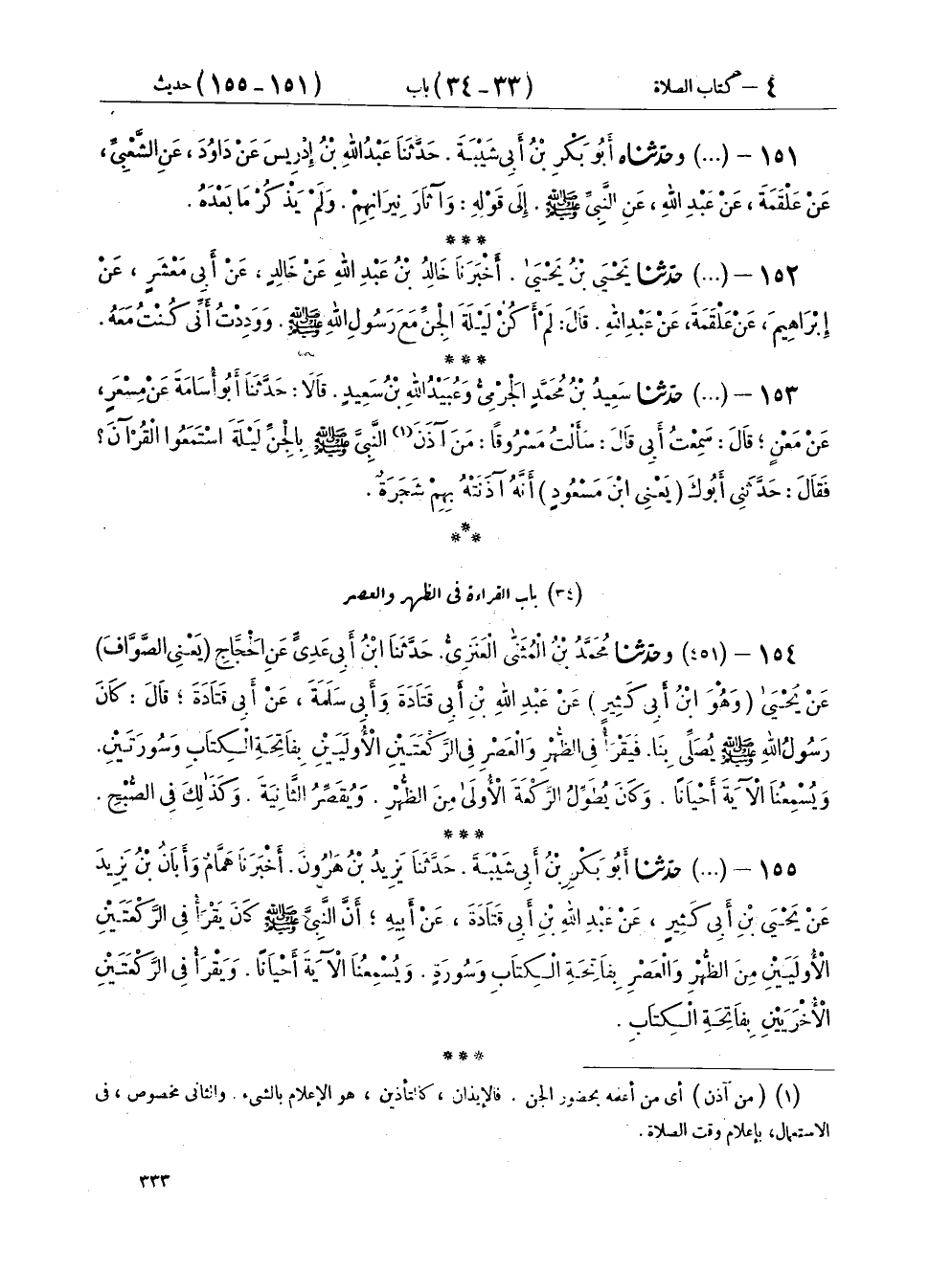 ١٥٦ - (٤٥٢) حَدَّثَنَا يَحْيَى بْنُ يَحْيَى، وَأَبُو بَكْرِ بْنُ أَبِي شَيْبَةَ، جَمِيعًا عَنْ هُشَيْمٍ، قَالَ: يَحْيَى، أَخْبَرَنَا هُشَيْمٌ، عَنْ مَنْصُورٍ، عَنِ الْوَلِيدِ بْنِ مُسْلِمٍ، عَنْ أَبِي الصِّدِّيقِ، عَنْ أَبِي سَعِيدٍ الْخُدْرِيِّ قَالَ: «كُنَّا نَحْزِرُ قِيَامَ رَسُولِ اللهِ صَلَّى اللهُ عَلَيْهِ وَسَلَّمَ فِي الظُّهْرِ وَالْعَصْرِ فَحَزَرْنَا قِيَامَهُ فِي الرَّكْعَتَيْنِ الْأُولَيَيْنِ مِنَ الظُّهْرِ قَدْرَ قِرَاءَةِ الم تَنْزِيلُ السَّجْدَةِ وَحَزَرْنَا قِيَامَهُ فِي الْأُخْرَيَيْنِ قَدْرَ النِّصْفِ مِنْ ذَلِكَ، وَحَزَرْنَا قِيَامَهُ فِي الرَّكْعَتَيْنِ الْأُولَيَيْنِ مِنَ الْعَصْرِ عَلَى قَدْرِ قِيَامِهِ فِي الْأُخْرَيَيْنِ مِنَ الظُّهْرِ وَفِي الْأُخْرَيَيْنِ مِنَ الْعَصْرِ عَلَى النِّصْفِ مِنْ ذَلِكَ» وَلَمْ يَذْكُرْ أَبُو بَكْرٍ فِي رِوَايَتِهِ: الم تَنْزِيلُ وَقَالَ: قَدْرَ ثَلَاثِينَ آيَةً
