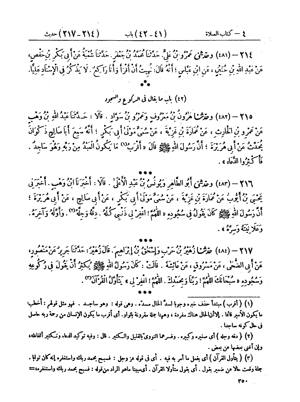 ٢١٥ - (٤٨٢) وَحَدَّثَنَا هَارُونُ بْنُ مَعْرُوفٍ، وَعَمْرُو بْنُ سَوَّادٍ، قَالَا: حَدَّثَنَا عَبْدُ اللهِ بْنُ وَهْبٍ، عَنْ عَمْرِو بْنِ الْحَارِثِ، عَنْ عُمَارَةَ بْنِ غَزِيَّةَ، عَنْ سُمَيٍّ مَوْلَى أَبِي بَكْرٍ، أَنَّهُ سَمِعَ أَبَا صَالِحٍ ذَكْوَانَ يُحَدِّثُ عَنْ أَبِي هُرَيْرَةَ أَنَّ رَسُولَ اللهِ صَلَّى اللهُ عَلَيْهِ وَسَلَّمَ قَالَ: «أَقْرَبُ مَا يَكُونُ الْعَبْدُ مِنْ رَبِّهِ، وَهُوَ سَاجِدٌ، فَأَكْثِرُوا الدُّعَاءَ»