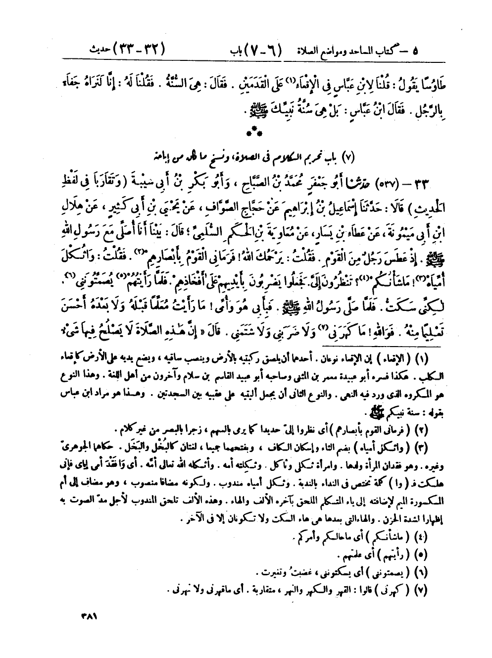٧ - بَابُ تَحْرِيمِ الْكَلَامِ فِي الصَّلَاةِ، وَنَسْخِ مَا كَانَ مِنْ إِبَاحَتِهِ