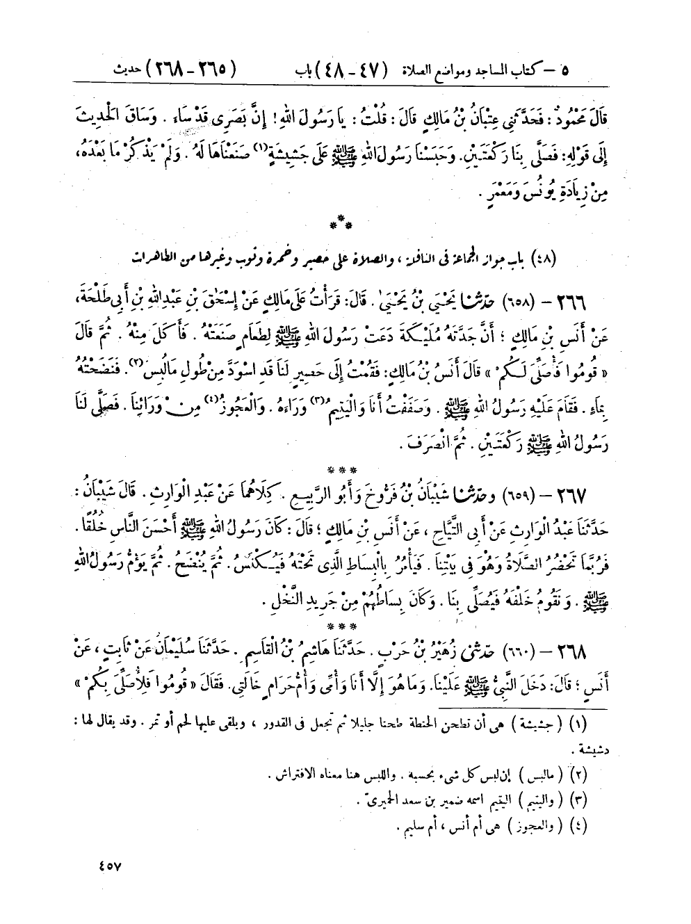 ٤٨ - بَابُ جَوَازِ الْجَمَاعَةِ فِي النَّافِلَةِ، وَالصَّلَاةِ عَلَى حَصِيرٍ وَخُمْرَةٍ وَثَوْبٍ، وَغَيْرِهَا مِنَ الطَّاهِرَاتِ
