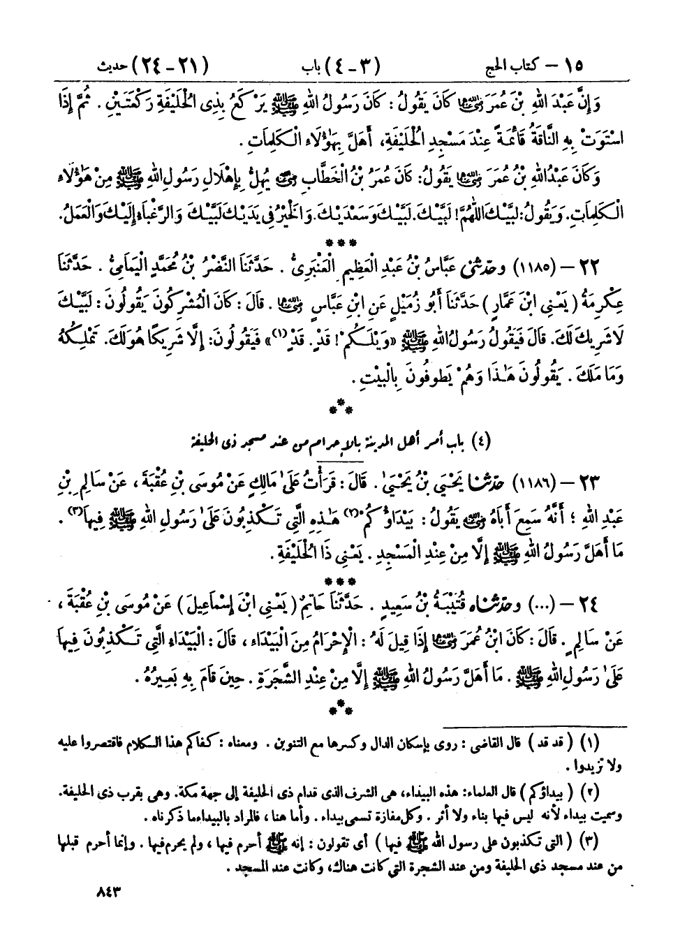 ٢٤ - (١١٨٦) وحَدَّثَنَاه قُتَيْبَةُ بْنُ سَعِيدٍ، حَدَّثَنَا حَاتِمٌ يَعْنِي ابْنَ إِسْمَاعِيلَ، عَنْ مُوسَى بْنِ عُقْبَةَ، عَنْ سَالِمٍ، قَالَ: كَانَ ابْنُ عُمَرَ رَضِيَ اللهُ عَنْهُمَا، إِذَا قِيلَ لَهُ: الْإِحْرَامُ مِنَ الْبَيْدَاءِ، قَالَ: الْبَيْدَاءُ الَّتِي تَكْذِبُونَ فِيهَا عَلَى رَسُولِ اللهِ صَلَّى اللهُ عَلَيْهِ وَسَلَّمَ، «مَا أَهَلَّ رَسُولُ اللهِ صَلَّى اللهُ عَلَيْهِ وَسَلَّمَ إِلَّا مِنْ عِنْدِ الشَّجَرَةِ، حِينَ قَامَ بِهِ بَعِيرُهُ»
