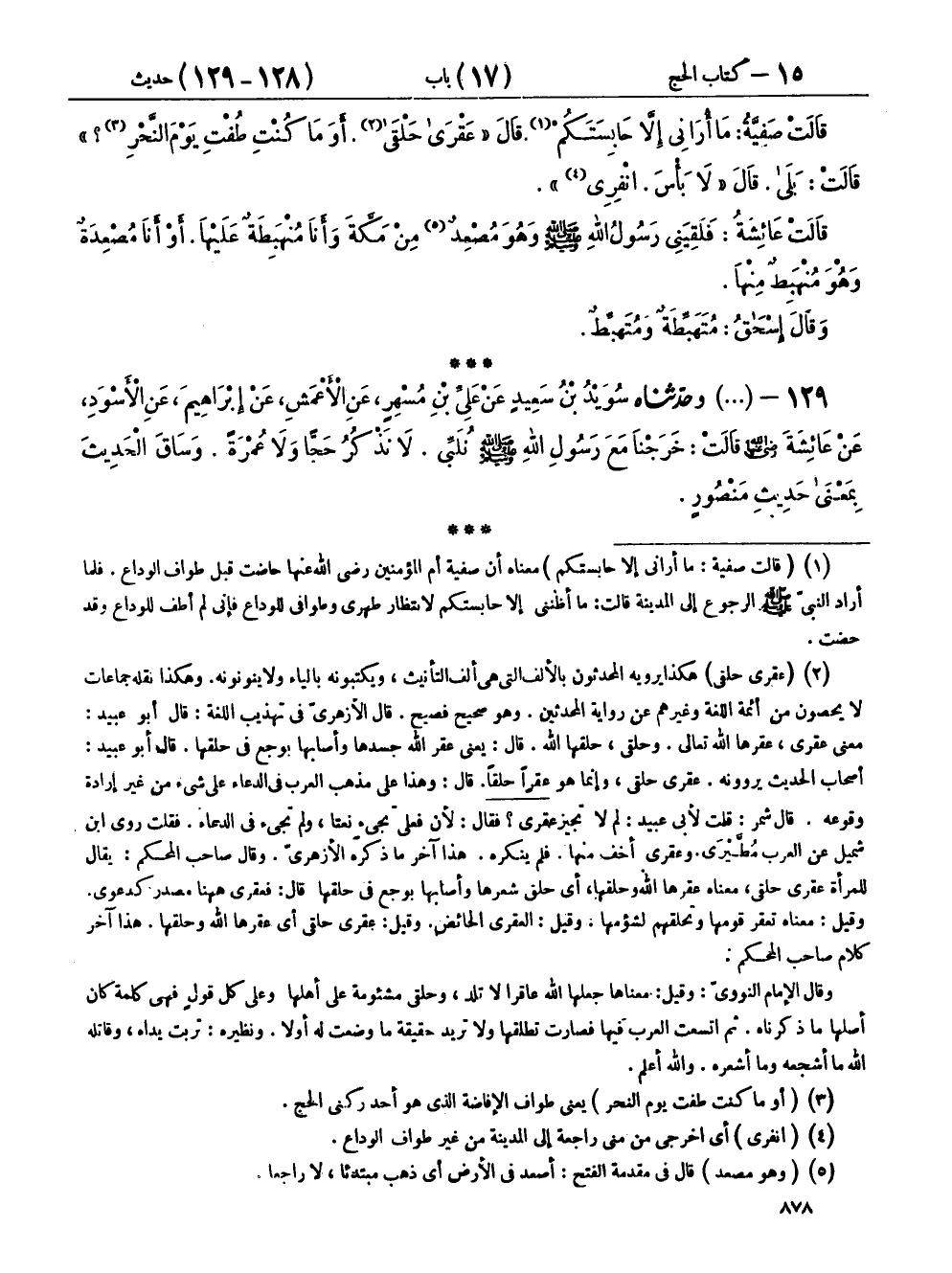 ١٢٩ - (١٢١١) وحَدَّثَنَاه سُوَيْدُ بْنُ سَعِيدٍ، عَنْ عَلِيِّ بْنِ مُسْهِرٍ، عَنِ الْأَعْمَشِ، عَنْ إِبْرَاهِيمَ، عَنِ الْأَسْوَدِ، عَنْ عَائِشَةَ رَضِيَ اللهُ عَنْهَا، قَالَتْ: خَرَجْنَا مَعَ رَسُولِ اللهِ صَلَّى اللهُ عَلَيْهِ وَسَلَّمَ نُلَبِّي، لَا نَذْكُرُ حَجًّا وَلَا عُمْرَةً، وَسَاقَ الْحَدِيثَ بِمَعْنَى حَدِيثِ مَنْصُورٍ
