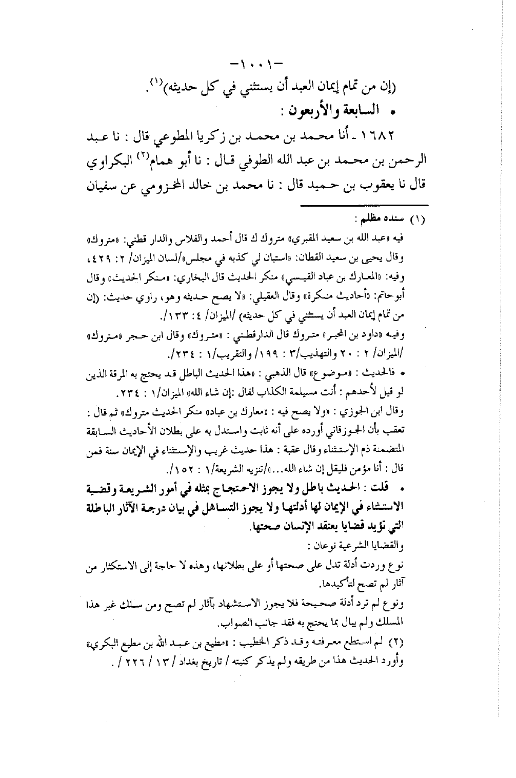 1682 - أنا مُحَمَّدُ بْنُ مُحَمَّدِ بْنِ زَكَرِيَّا الْمُطَّوِّعِيُّ، قَالَ: نا عَبْدُ الرَّحْمَنِ بْنُ مُحَمَّدِ بْنِ عَبْدِ اللَّهِ الطُّوفِيُّ، قَالَ: نا أَبُو هَمَّارٍ الْبَكْرَاوِيُّ، قَالَ: نا يَعْقُوبُ بْنُ حُمَيْدٍ، قَالَ: نا مُحَمَّدُ بْنُ خَالِدٍ الْمَخْزُومِيُّ، عَنْ سُفْيَانَ -[1002]- الثَّوْرِيِّ، عَنْ زُبَيْدٍ، عَنْ مُرَّةَ، عَنْ عَبْدِ اللَّهِ، عَنِ النَّبِيِّ صَلَّى اللهُ عَلَيْهِ وَسَلَّمَ قَالَ: «§الصَّبْرُ نِصْفُ الْإِيمَانِ، وَالْيَقِينُ الْإِيمَانُ كُلُّهُ»