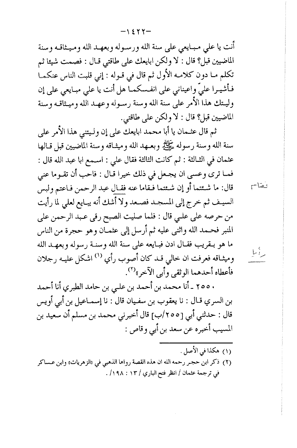 2550 - أنا مُحَمَّدُ بْنُ أَحْمَدَ بْنِ عَلِيِّ بْنِ حَامِدٍ الطَّبَرِيُّ، أنا أَحْمَدُ بْنُ السَّرِيِّ، قَالَ: نا يَعْقُوبُ بْنُ سُفْيَانَ، قَالَ: نا إِسْمَاعِيلُ بْنُ أَبِي أُوَيْسٍ، قَالَ: حَدَّثَنِي أَبِي قَالَ: أَخْبَرَنِي مُحَمَّدُ بْنُ مُسْلِمٍ، أَنَّ سَعِيدَ بْنَ الْمُسَيِّبِ أَخْبَرَهُ عَنْ سَعْدِ بْنِ أَبِي وَقَّاصٍ -[1423]-، أَنَّهُ أَرْسَلَ إِلَى عَبْدِ الرَّحْمَنِ بْنِ عَوْفٍ: «ارْفَعْ رَأْسَكَ، وَانْظُرْ فِي أُمُورِ النَّاسِ» . فَقَالَ عَبْدُ الرَّحْمَنِ: «إِنَّهُ §لَنْ يَلِيَ هَذَا الْأَمْرَ أَحَدٌ بَعْدَ عُمَرَ إِلَّا لَامَهُ النَّاسُ»