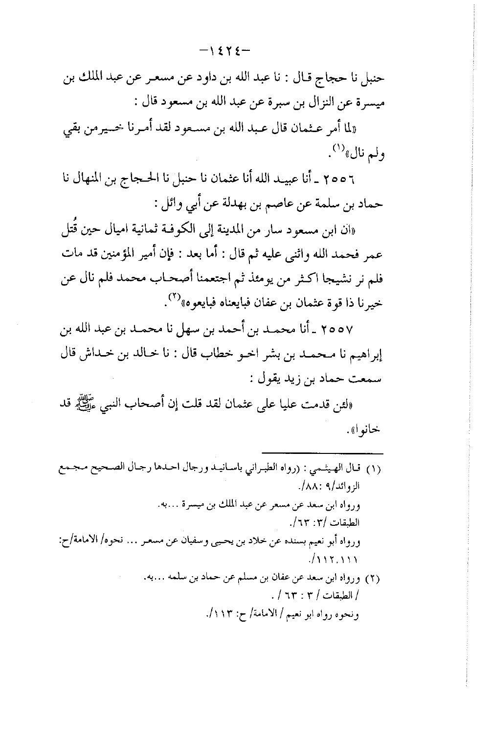 2557 - أنا مُحَمَّدُ بْنُ أَحْمَدَ بْنِ سَهْلٍ، نا مُحَمَّدُ بْنُ عَبْدِ اللَّهِ بْنِ إِبْرَاهِيمَ، نا مُحَمَّدُ بْنُ بِشْرٍ أَخُو خَطَّابٍ، قَالَ: نا خَالِدُ بْنُ خِدَاشٍ، قَالَ: سَمِعْتُ حَمَّادَ بْنَ زَيْدٍ يَقُولُ: «§لَئِنْ قَدَّمْتَ عَلِيًّا عَلَى عُثْمَانَ، لَقَدْ قُلْتَ إِنَّ أَصْحَابَ النَّبِيِّ صَلَّى اللهُ عَلَيْهِ وَسَلَّمَ قَدْ خَانُوا»