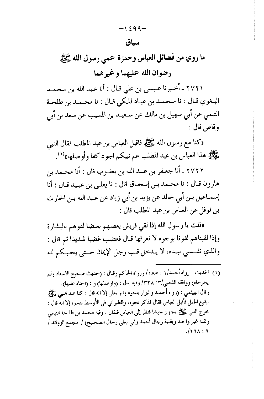 §سِيَاقُ مَا رُوِيَ مِنْ فَضَائِلِ الْعَبَّاسِ وَحَمْزَةَ عَمَّيْ رَسُولِ اللَّهِ صَلَّى اللهُ عَلَيْهِ وَسَلَّمَ، وَرِضْوَانُ اللَّهِ عَلَيْهِمَا وَغَيْرِهِمَا