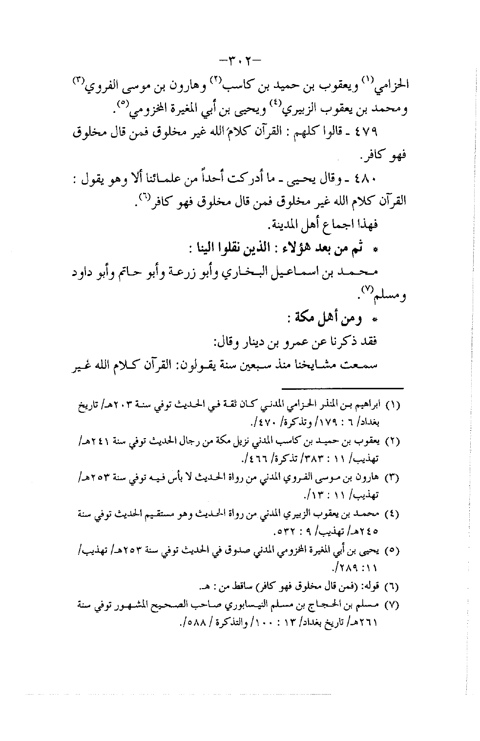 §وَمِنْ أَهْلِ مَكَّةَ فَقَدْ ذَكَرْنَا عَنْ عَمْرِو بْنِ دِينَارٍ وَقَالَ: سَمِعْتُ مَشَايِخَنَا مُنْذُ سَبْعِينَ سَنَةً يَقُولُونَ: الْقُرْآنُ كَلَامُ اللَّهِ غَيْرُ -[303]- مَخْلُوقٍ. وَقَدْ ذَكَرْنَا مِنَ الَّذِينَ لَحِقَ مِنَ الصَّحَابَةِ وَالتَّابِعِينَ عَمْرَو بْنَ دِينَارٍ فِيمَا تَقَدَّمَ.