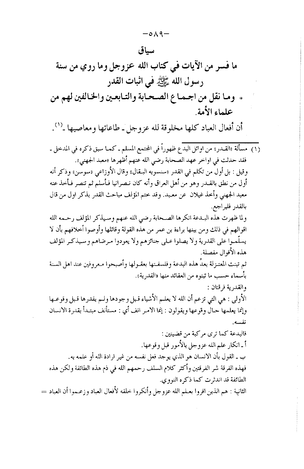 §سِيَاقُ مَا فُسِّرَ مِنَ الْآيَاتِ فِي كِتَابِ اللَّهِ عَزَّ وَجَلَّ وَمَا رُوِيَ مِنْ سُنَّةِ رَسُولِ اللَّهِ صَلَّى اللهُ عَلَيْهِ وَسَلَّمَ فِي إِثْبَاتِ الْقَدَرِ وَمَا نُقِلَ مِنْ إِجْمَاعِ الصَّحَابَةِ وَالتَّابِعِينَ وَالْخَالِفِينَ لَهُمْ مِنْ عُلَمَاءِ الْأُمَّةِ أَنَّ أَفْعَالَ الْعِبَادِ كُلَّهَا مَخْلُوقَةٌ لِلَّهِ عَزَّ وَجَلَّ طَاعَاتِهَا وَمَعَاصِيَهَا