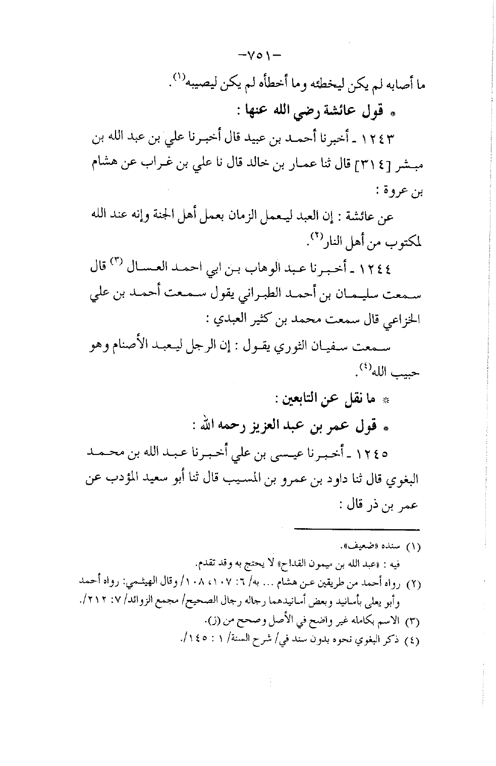 1243 - أَخْبَرَنَا أَحْمَدُ بْنُ عُبَيْدٍ، قَالَ: أَخْبَرَنَا عَلِيُّ بْنُ عَبْدِ اللَّهِ بْنِ مُبَشِّرٍ، قَالَ: ثنا عَمَّارُ بْنُ خَالِدٍ، قَالَ: نا عَلِيُّ بْنُ غُرَابٍ , عَنْ هِشَامِ بْنِ عُرْوَةَ , عَنْ عَائِشَةَ: إِنَّ الْعَبْدَ §لَيَعْمَلُ الزَّمَانَ بِعَمَلِ أَهْلِ الْجَنَّةِ وَإِنَّهُ عِنْدَ اللَّهِ لَمَكْتُوبٌ مِنْ أَهْلِ النَّارِ