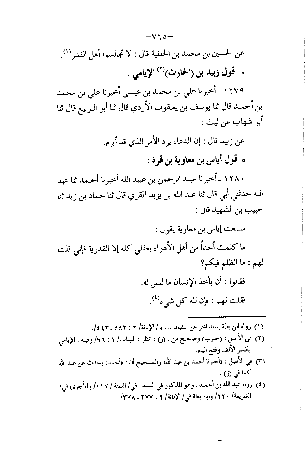 1280 - أَخْبَرَنَا عَبْدُ الرَّحْمَنِ بْنُ عُبَيْدِ اللَّهِ , أَخْبَرَنَا أَحْمَدُ بْنُ عَبْدِ اللَّهِ , حَدَّثَنِي أَبِي قَالَ: ثنا عَبْدُ اللَّهِ بْنُ يَزِيدَ الْمُقْرِئُ، قَالَ: ثنا حَمَّادُ بْنُ زَيْدٍ , ثنا حَبِيبُ بْنُ الشَّهِيدِ، قَالَ: سَمِعْتُ إِيَاسَ بْنَ مُعَاوِيَةَ يَقُولُ: مَا §كَلَّمْتُ أَحَدًا مِنْ أَهْلِ الْأَهْوَاءِ بِعَقْلِي كُلِّهِ إِلَّا الْقَدَرِيَّةَ فَإِنِّي قُلْتُ لَهُمْ: مَا الظُّلْمُ فِيكُمْ؟ فَقَالُوا: أَنْ يَأَخُذَ الْإِنْسَانُ مَا لَيْسَ لَهُ، فَقُلْتُ لَهُمْ: فَإِنَّ لِلَّهِ كُلَّ شَيْءٍ