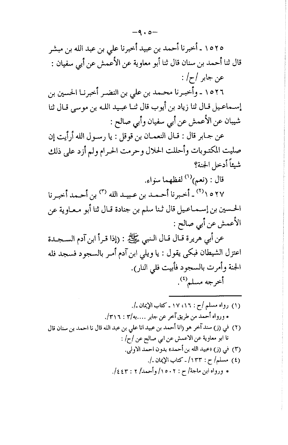 1525 - أَخْبَرَنَا أَحْمَدُ بْنُ عُبَيْدٍ، أَخْبَرَنَا عَلِيُّ بْنُ عَبْدِ اللَّهِ بْنِ مُبَشِّرٍ، قَالَ: ثنا أَحْمَدُ بْنُ سِنَانٍ، قَالَ: ثنا أَبُو مُعَاوِيَةَ، عَنِ الْأَعْمَشِ، عَنْ أَبِي سُفْيَانَ، عَنْ جَابِرٍ: ح