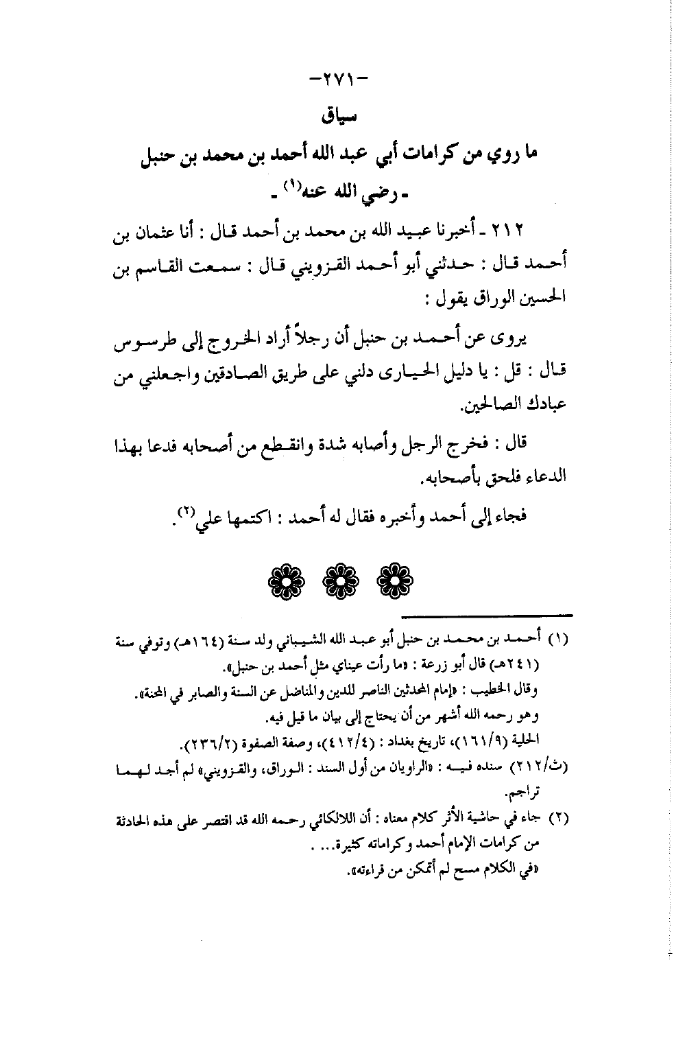 §سِيَاقُ مَا رُوِيَ مِنْ كَرَامَاتِ أَبِي عَبْدِ اللَّهِ أَحْمَدَ بْنِ مُحَمَّدِ بْنِ حَنْبَلٍ رَضِيَ اللَّهُ عَنْهُ