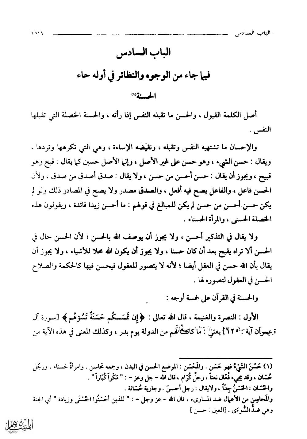 فيما جاء من الوجوه والنظائر في أوله حاء الحسنة