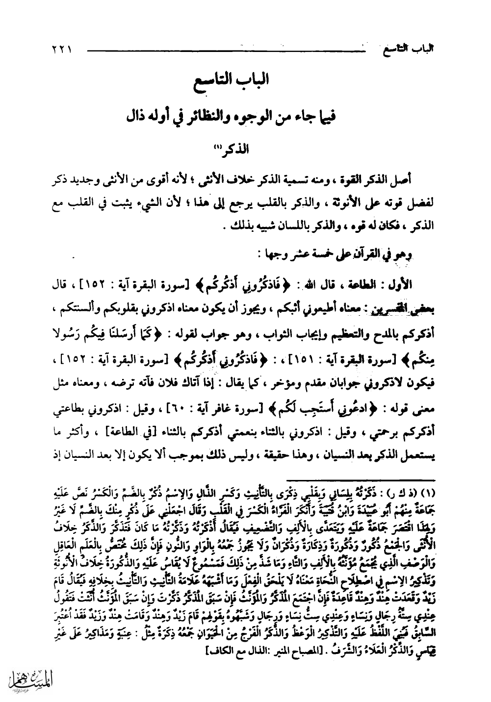 فيما جاء من الوجوه والنظائر في أوله ذال