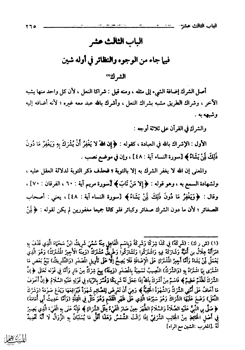 فيما جاء من الوجوه والنظائر في أوله شين