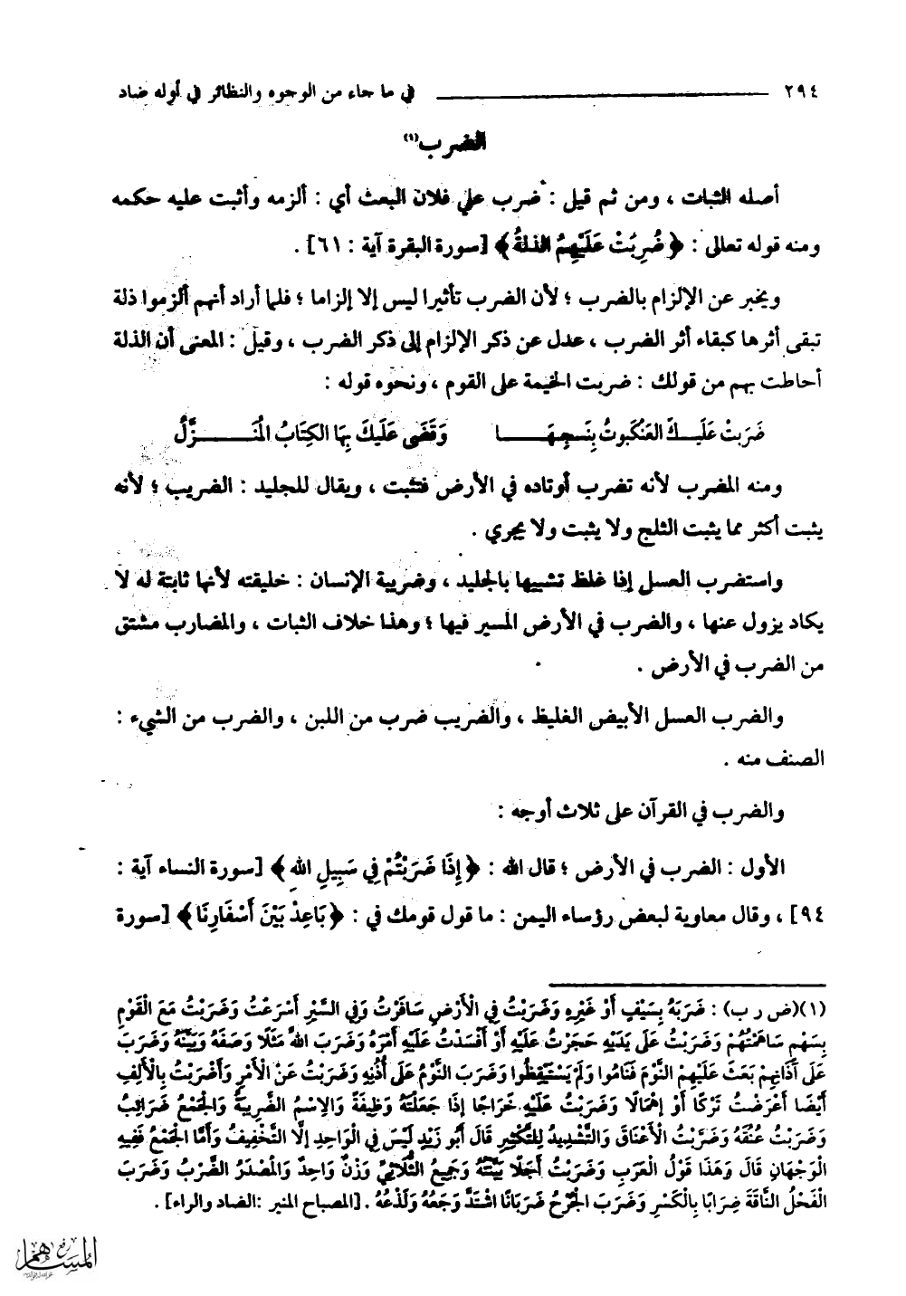 والضرب في القرآن على ثلاثة أوجه: